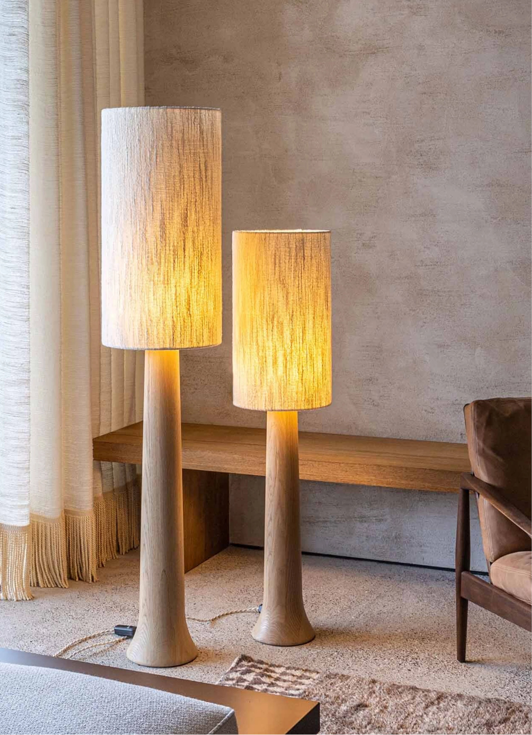 The FL5 is a sculptural wooden floor lamp that unites the strength of nature with refined contemporary sensibility. De Ruddere's signature approach - drawing inspiration from the organic world, then distilling it into pure geometric form is evident throughout. The tree-trunk-inspired silhouette feels both solid and elegant, a balance that defines his practice. Available in Brutal Oak, Gentle Oak, Mahogany, and American Walnut.