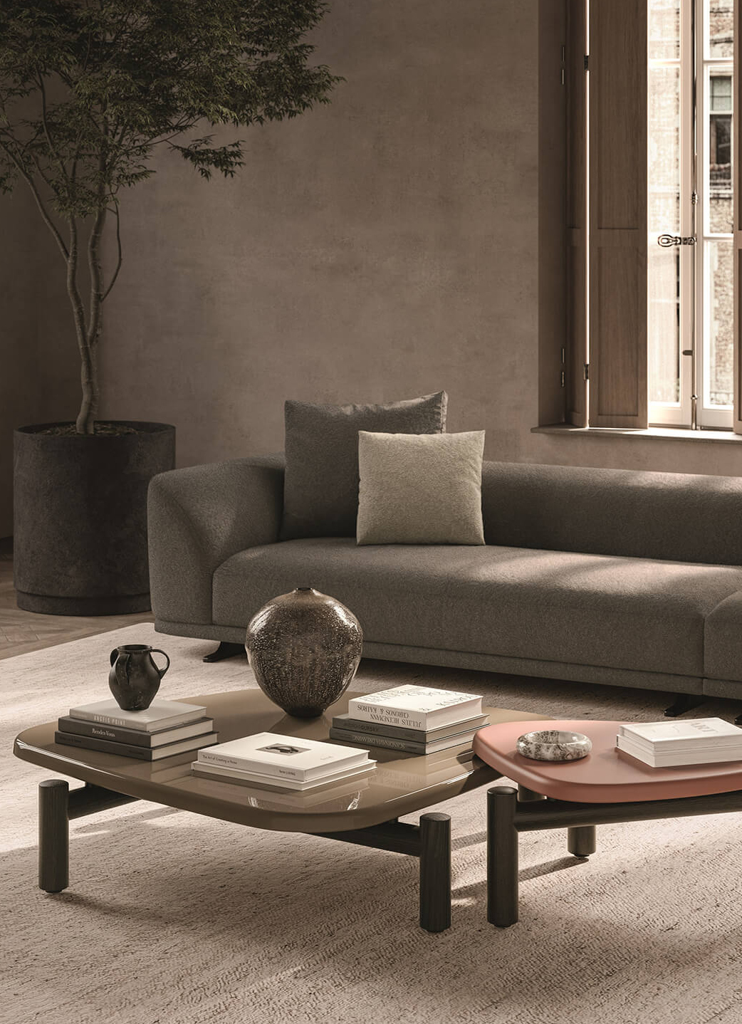 A firm favourite, Molteni returns with some iconic designs. An expression of modular elegance, Emile by Christophe Delcourt is a dynamic sofa system designed to adapt to the evolving needs of contemporary living. Characterised by a sculptural silhouette, Emile features a refined backrest with fluid, shifting heights, creating a harmonious play of proportions within the space.