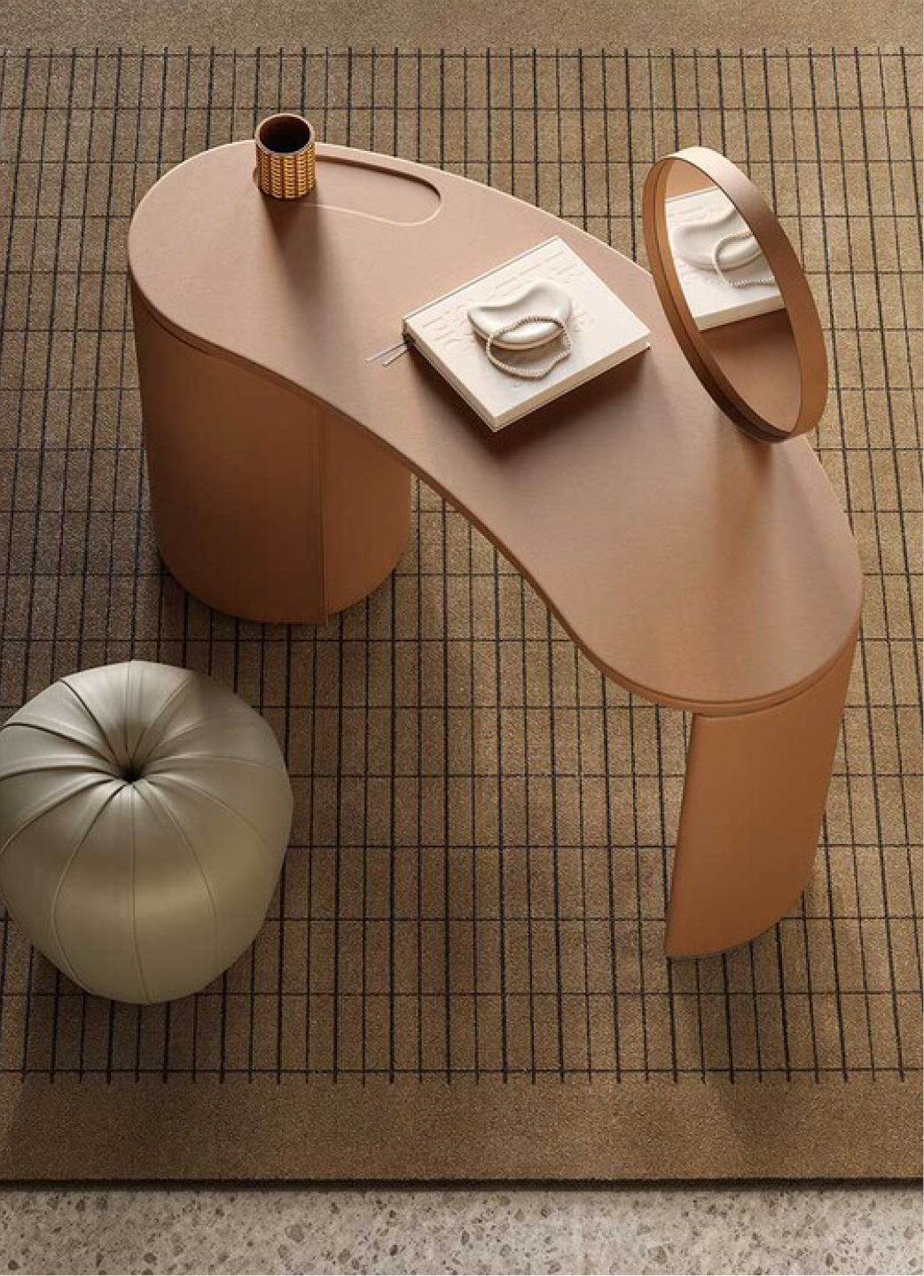 We've fallen for the Stock 'n' Roll Dressing Table by Sebastian Herkner. It's a piece that doesn't try too hard, an exquisitely proportioned form in curved beech and soft Pelle Frau leather. Open it, and you find an interior quietly ready for ritual. The hand-stitching is the kind of detail you notice at 7am before anyone else is awake.