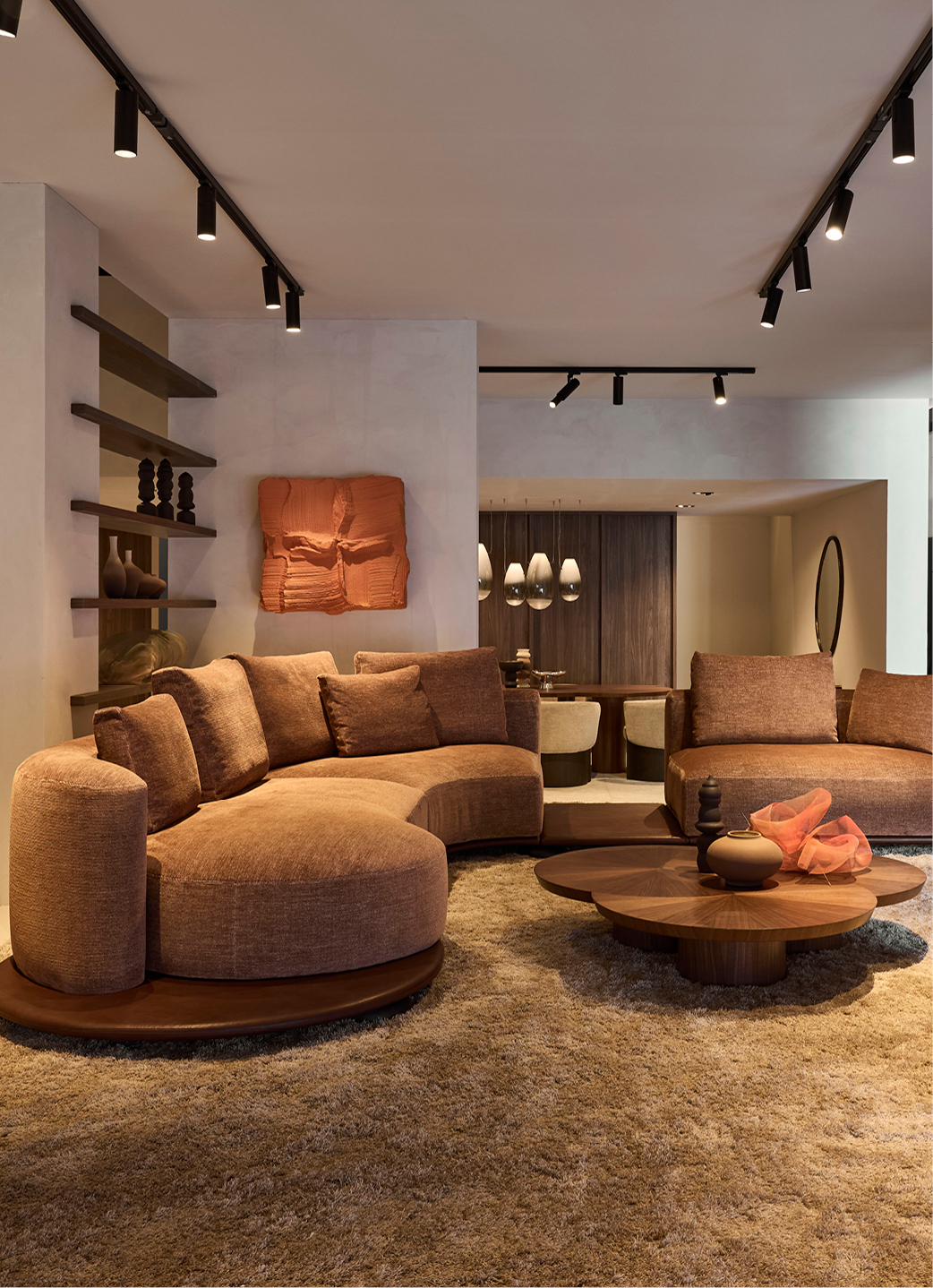 The space has been rethought as a progression of domestic settings, shaped by shifts in scale, material and light. Each room introduces a different mood while remaining part of a single, coherent vision.