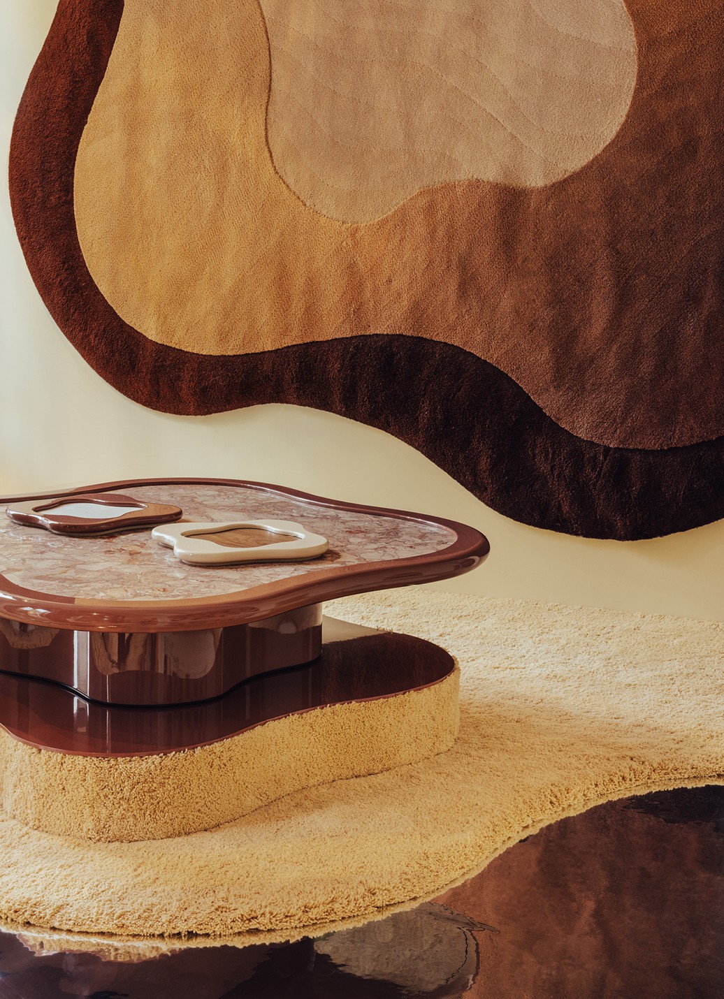 This year Bieke Castelyn collaborates with Jov Design to present: In Clover - an immersive landscape of softness. Two worlds. One language. where furniture and rugs merge into one spatial experience.