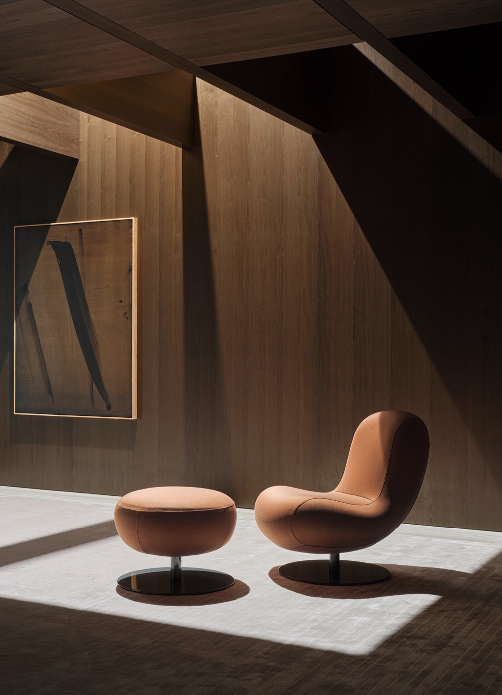 An icon onstage: A moment of quiet, a space designed around the Move armchair to slow the pace, soften the noise, and restore balance.
