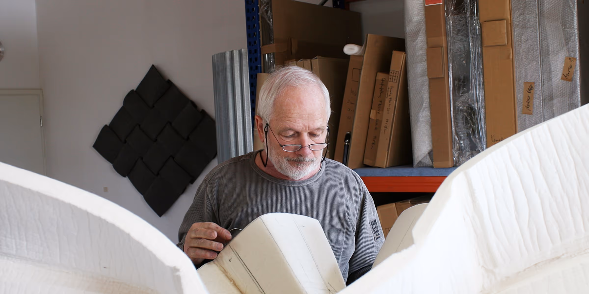 Using the most varied techniques and materials, Peter Weber has developed a system for folding the entire surface of a single piece of material without cutting it. His folded works of undyed or dyed felt, which has been Weber’s dominant material since 2001, exhibit a strong materiality.