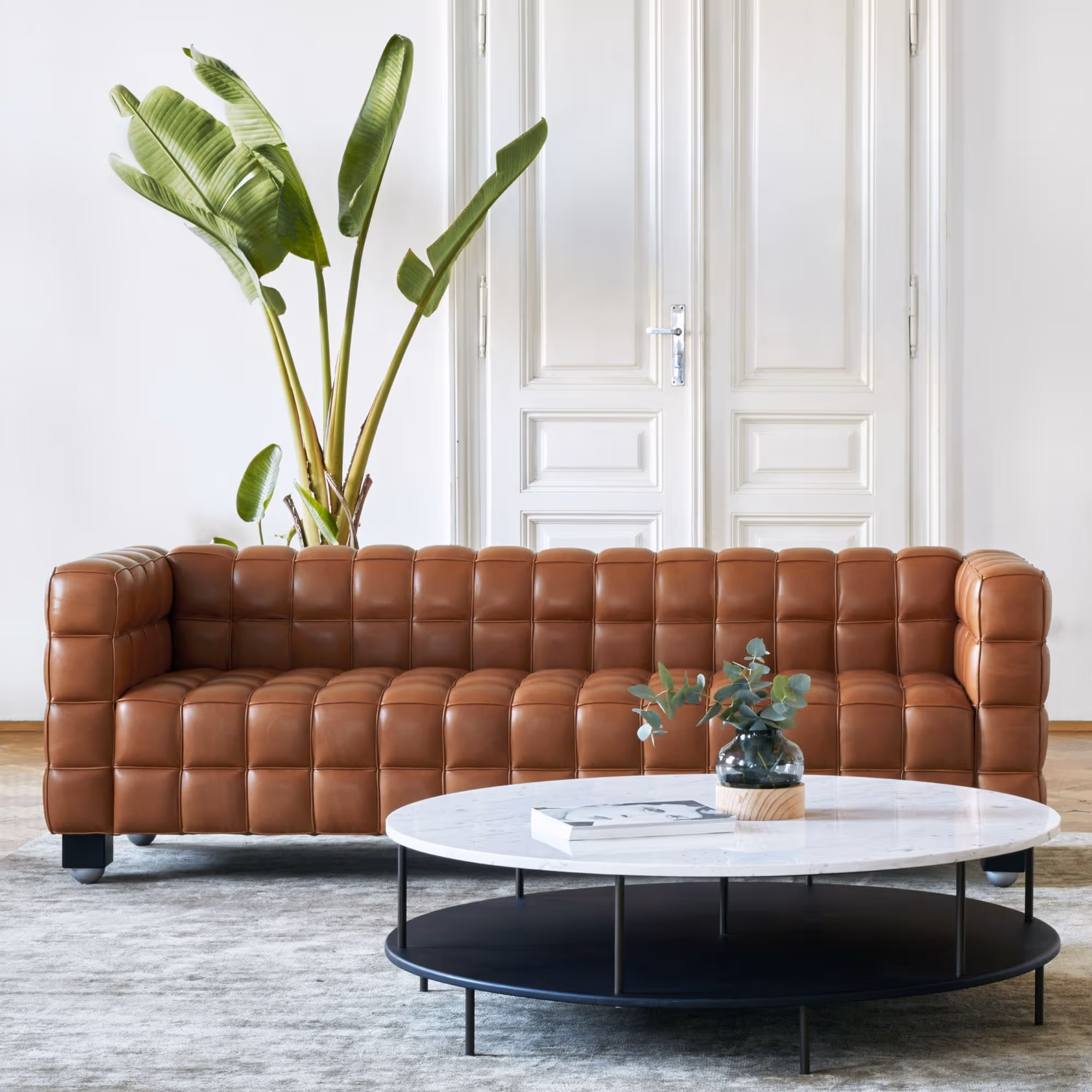 Our curated collection of contemporary designer leather sofas celebrates thoughtful design, blending beauty with functionality. Each piece is designed to sit naturally within an interior, bringing comfort, sculptural presence and timeless elegance to every space.