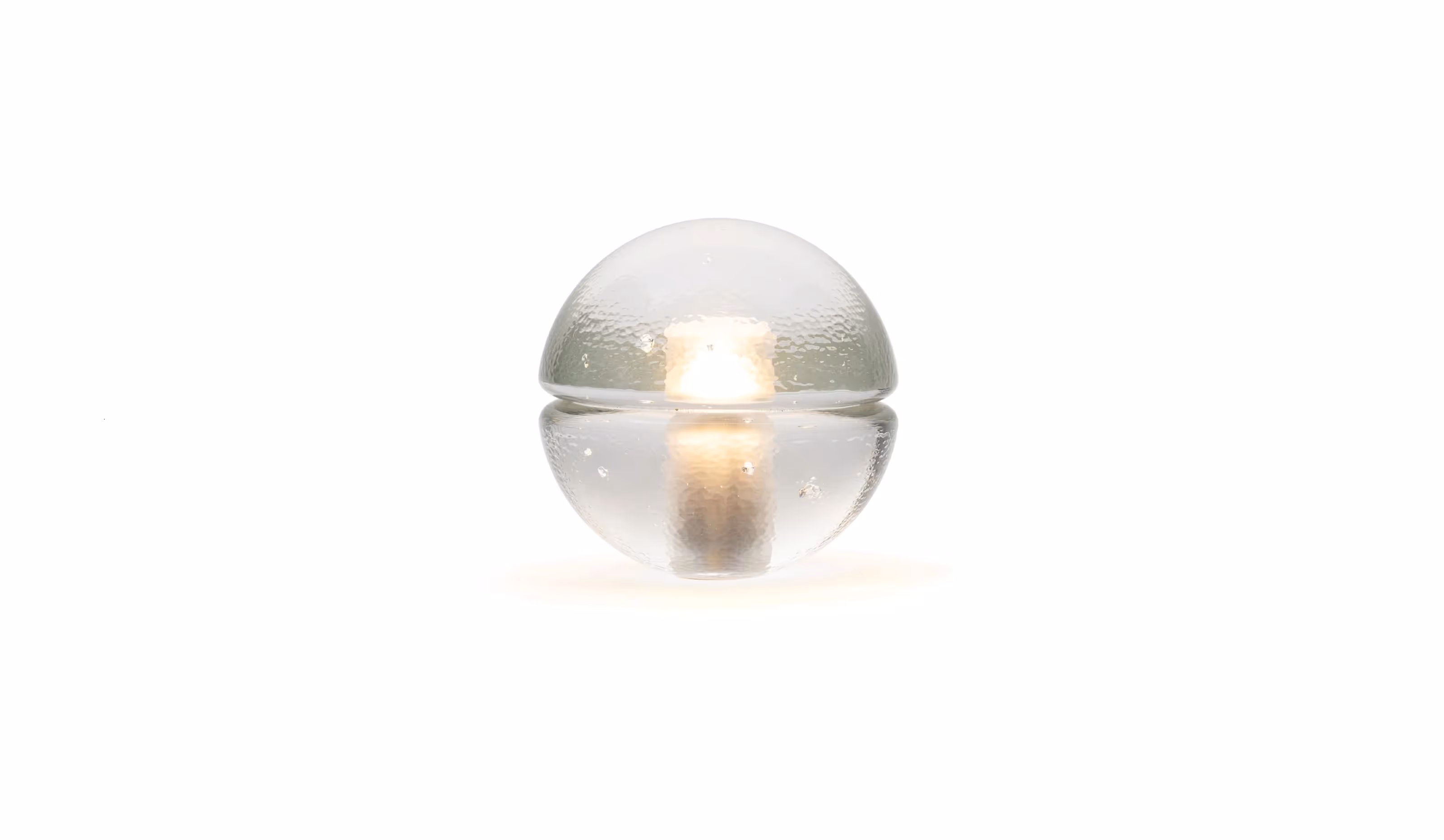 14p transforms Bocci’s iconic 14 Series, first launched in 2005, into a portable, candle-like table light. The rechargeable cast-glass pendant—made of two imperfect poured-glass hemispheres—is fully wireless. Anywhere you go, so does 14p’s rippling, watery glow. Press button to change through three ambient lighting levels.