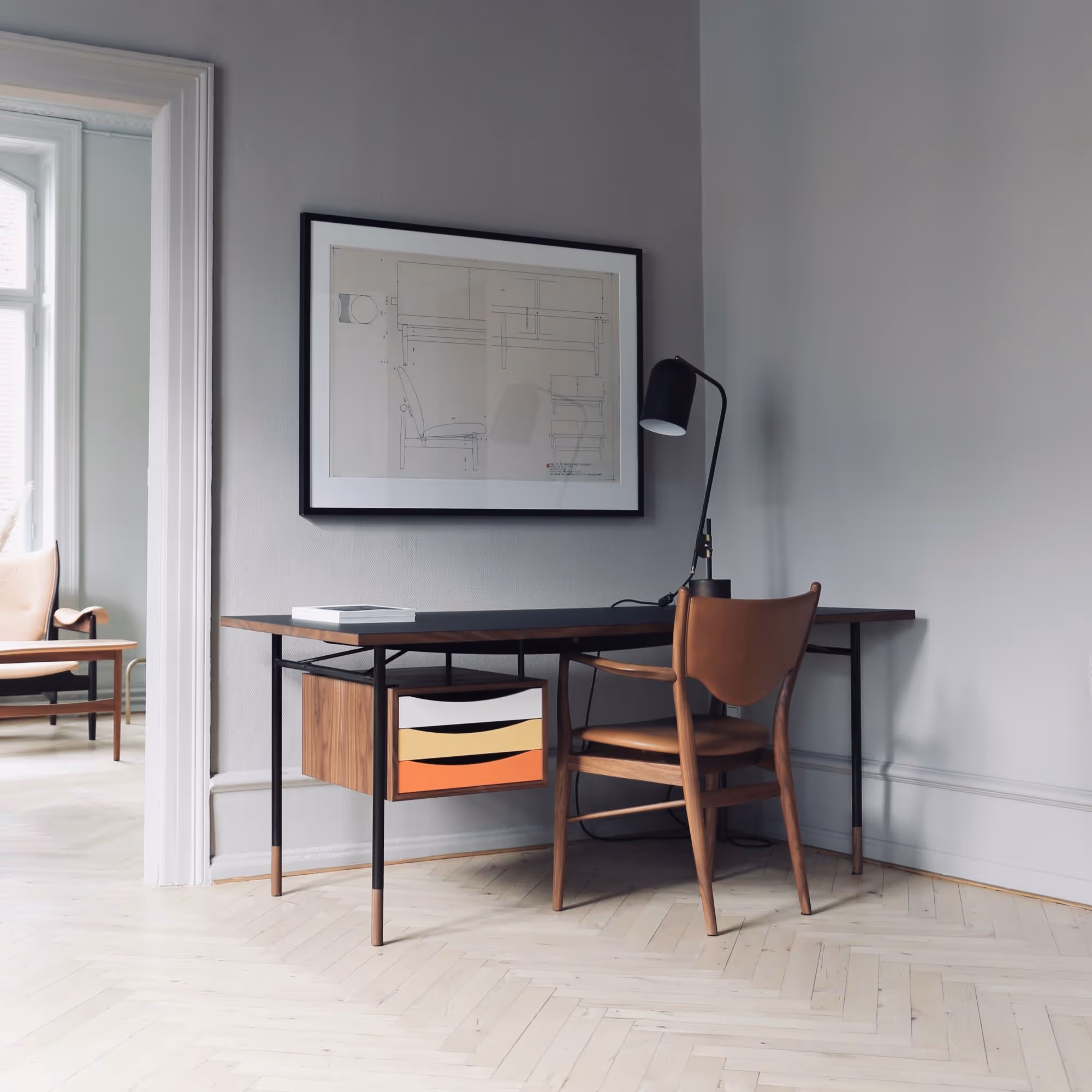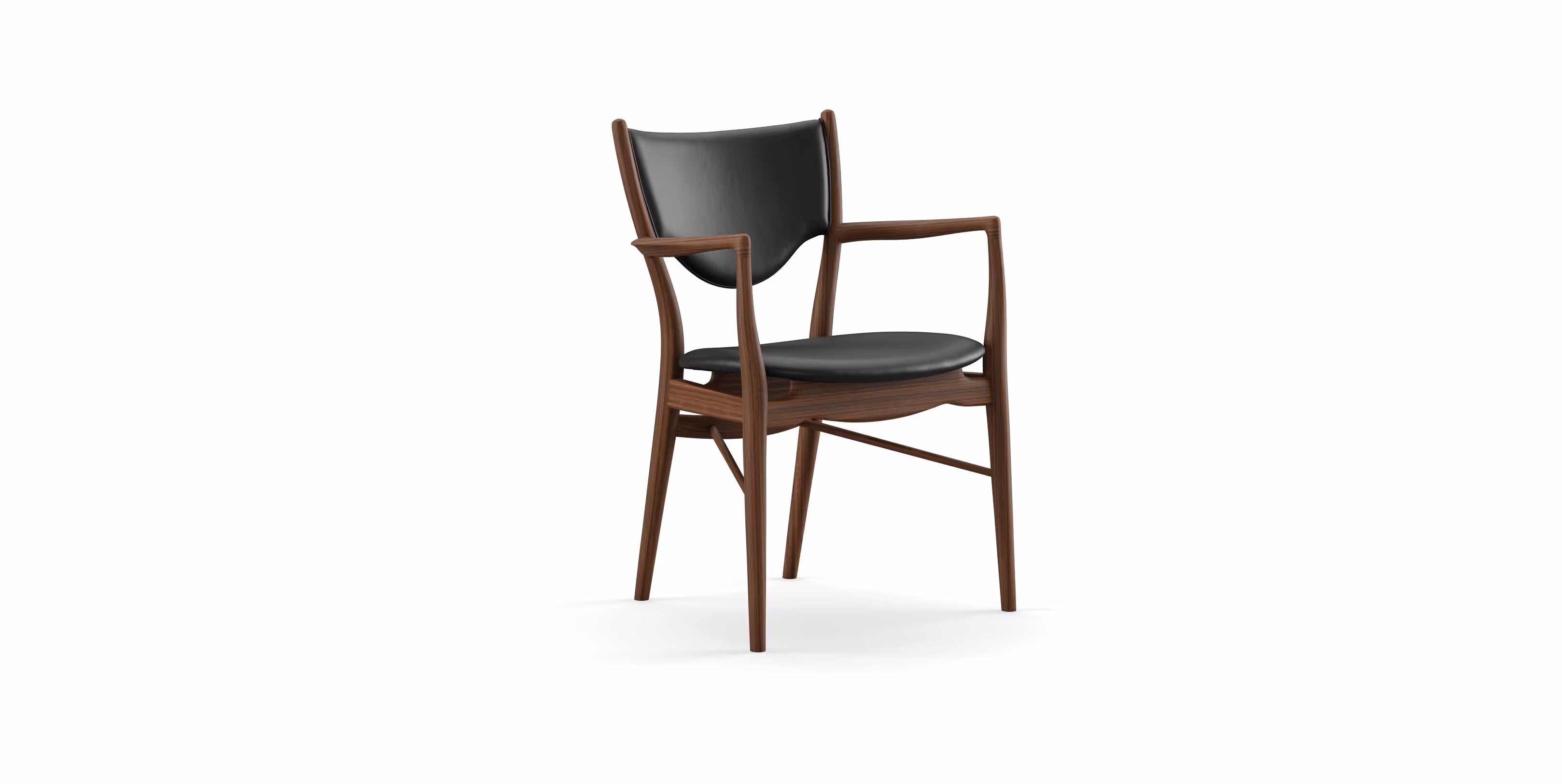 Rather than thinking in terms of practical construction, Finn Juhl had the mind-set of a sculptor, when he shaped a piece of furniture. In the 1940s and 1950s, this way of working had never been seen before. His ambition was to design furniture with movement and life. Finn Juhl took pride in making both the structurally supportive elements of the furniture and the seated person look as though they are floating.