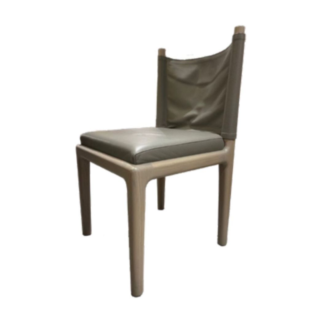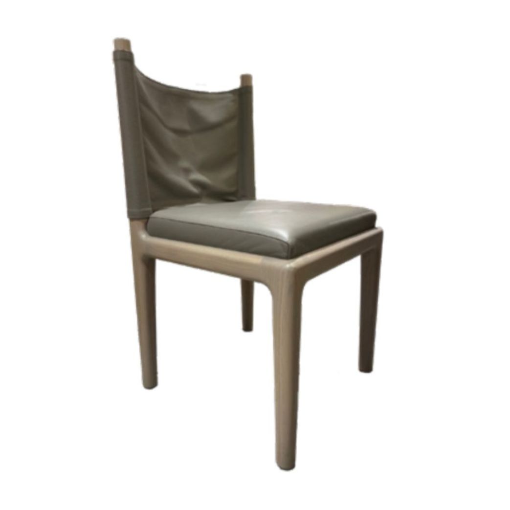 Sleek dining, meeting, or desk chair with rounded frame in Van Rossum oak or walnut and back and seat in ultra-soft leather or fabric.