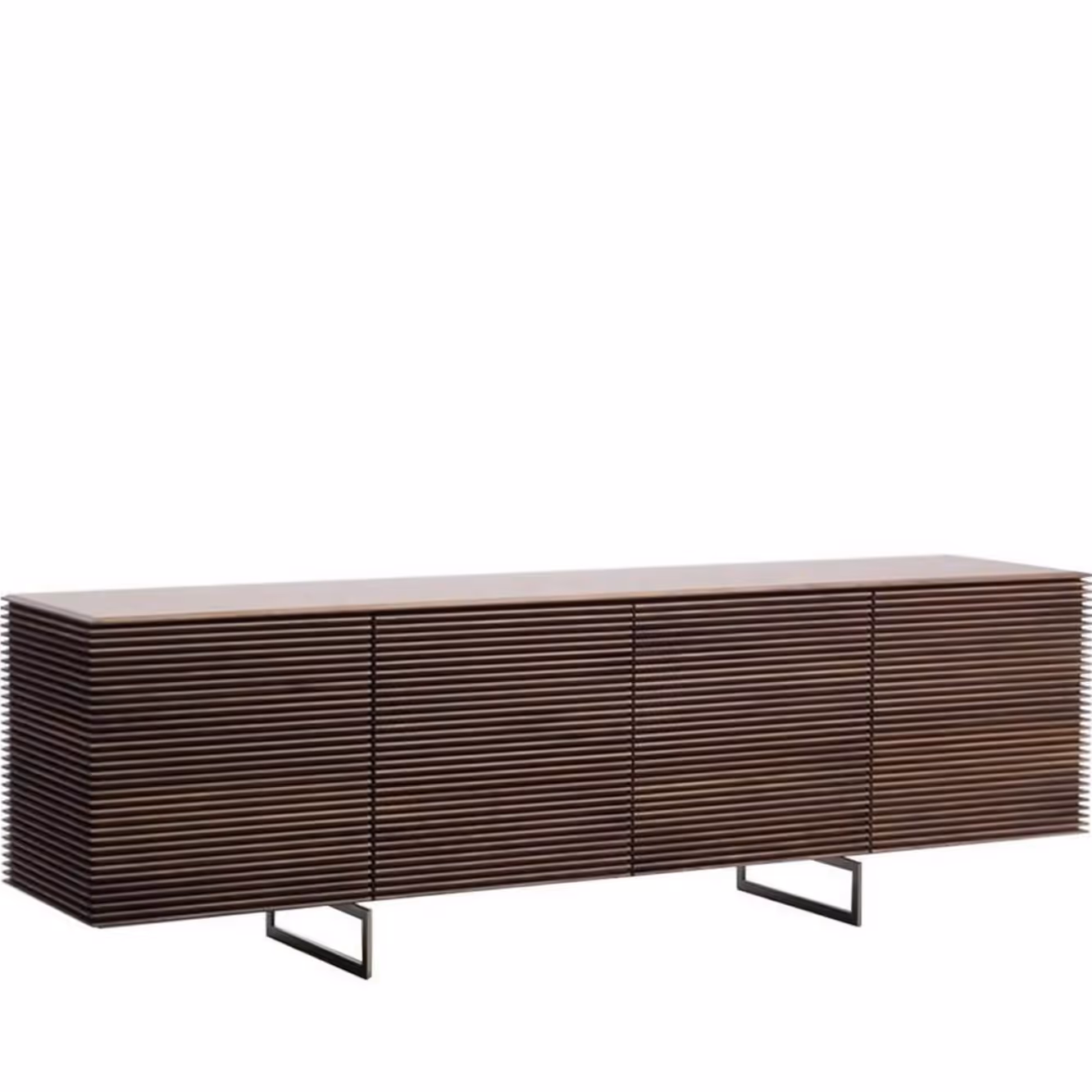 The Arizona design sideboard created by Alessio Bassan is embellished with two types of brushed finishes, handmade by skilled craftsmen. The Arizona model has a fine Brushed finish, which decorates the doors with delicate metallic scratches, while the Arizona Crossing model is finished with a weft and warp pattern that resembles a weave on the fabric, giving greater three-dimensionality.