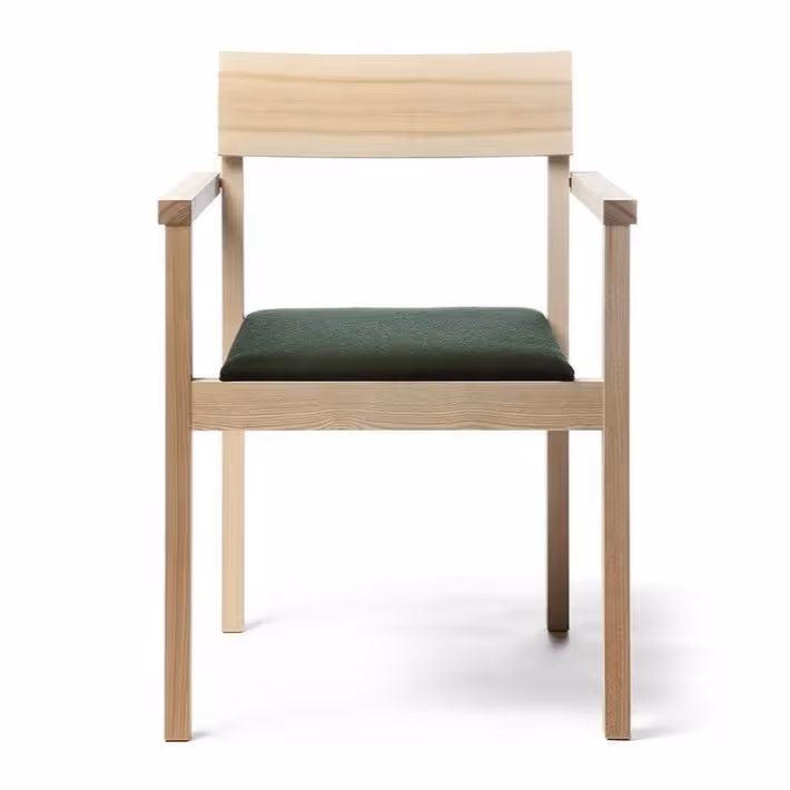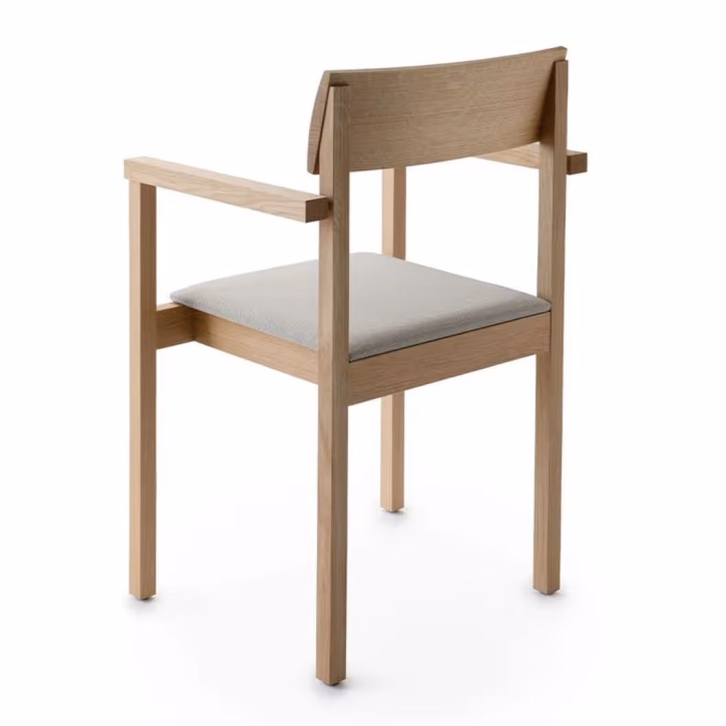 The Arkitecture KVT8 chair, designed by Kari Virtanen, is characterised by simple, rectangular lines and an upright profile. The chair has armrests, and its hand-finished backrest is enlivened by beautiful grain patterns. Arkitecture KVT8 is available in oiled birch, ash or oak, with an upholstered seat.