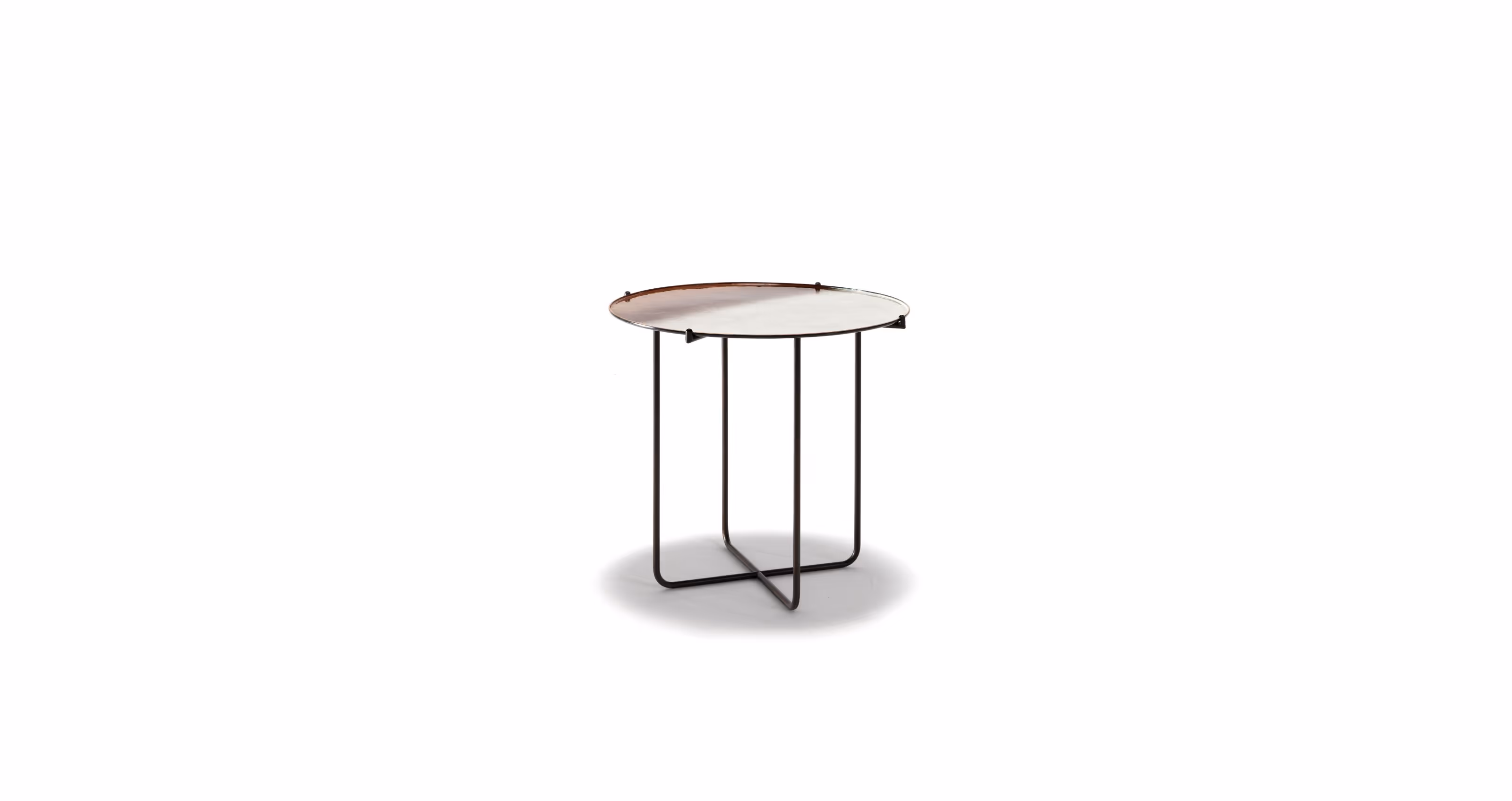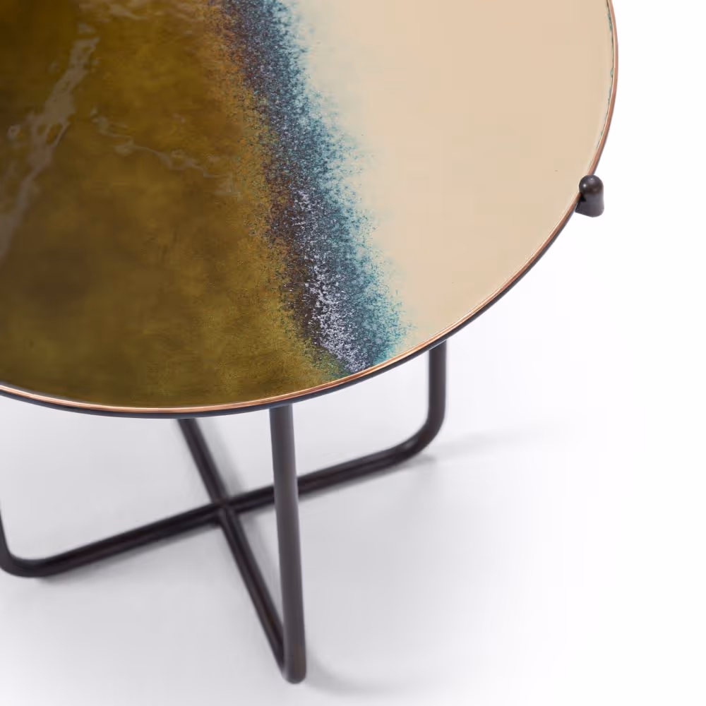 The Astratto Coffee Tables reinterpret abstract art through design. Enamelled copper surfaces, rich in chromatic nuances and irregular reflections, evoke brushstrokes suspended in time. Light structures frame their sculptural essence, making each piece unique thanks to meticulous craftsmanship.