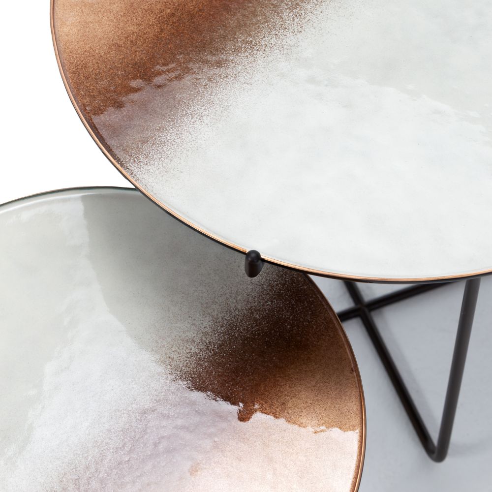 Handcrafted in copper and enamel, the Astratto Coffee Tables celebrate material contrasts. Minimal yet expressive, with glossy surfaces and unique variations, they reflect exceptional craftsmanship. A timeless tribute to abstraction—where poetry, technique, and contemporary design meet.