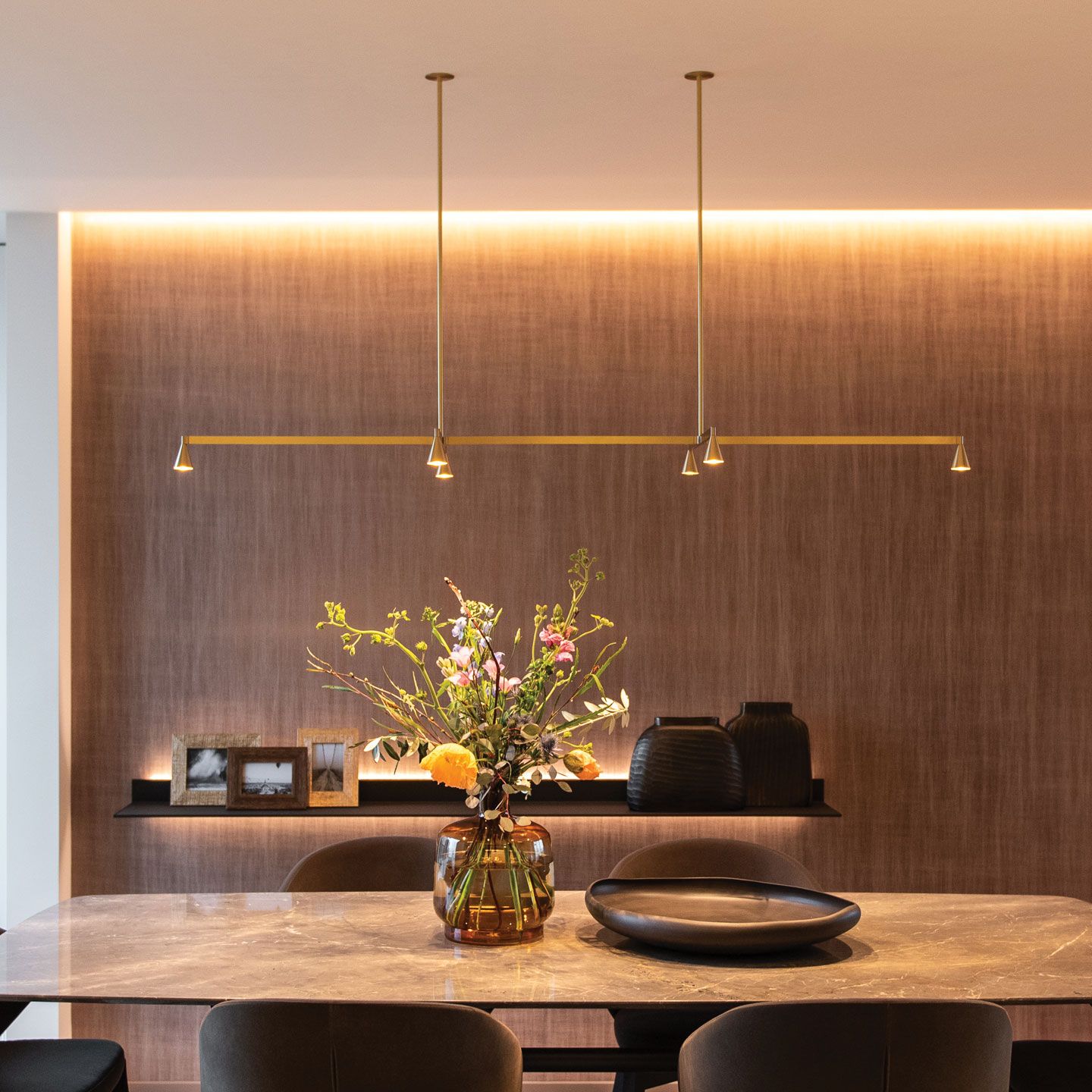 The Austere-Suspension also allows you to create unique compositions with depth. A well-thought-out combination of the various components will create real eye-catchers that look magnificent in lobbies, reception areas or dining rooms.
