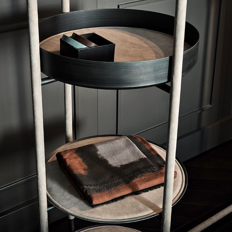 Leather becomes an ornament on this range of designs, suitable for the most refined living rooms and dining rooms, as well as bedrooms. The Bak collection is distinguished by its easily recognisable rectangular structure, which is multiplied, scaled up and down, and crossed over as necessary to create a dining table, coffee table, clothes valet and bookcase.