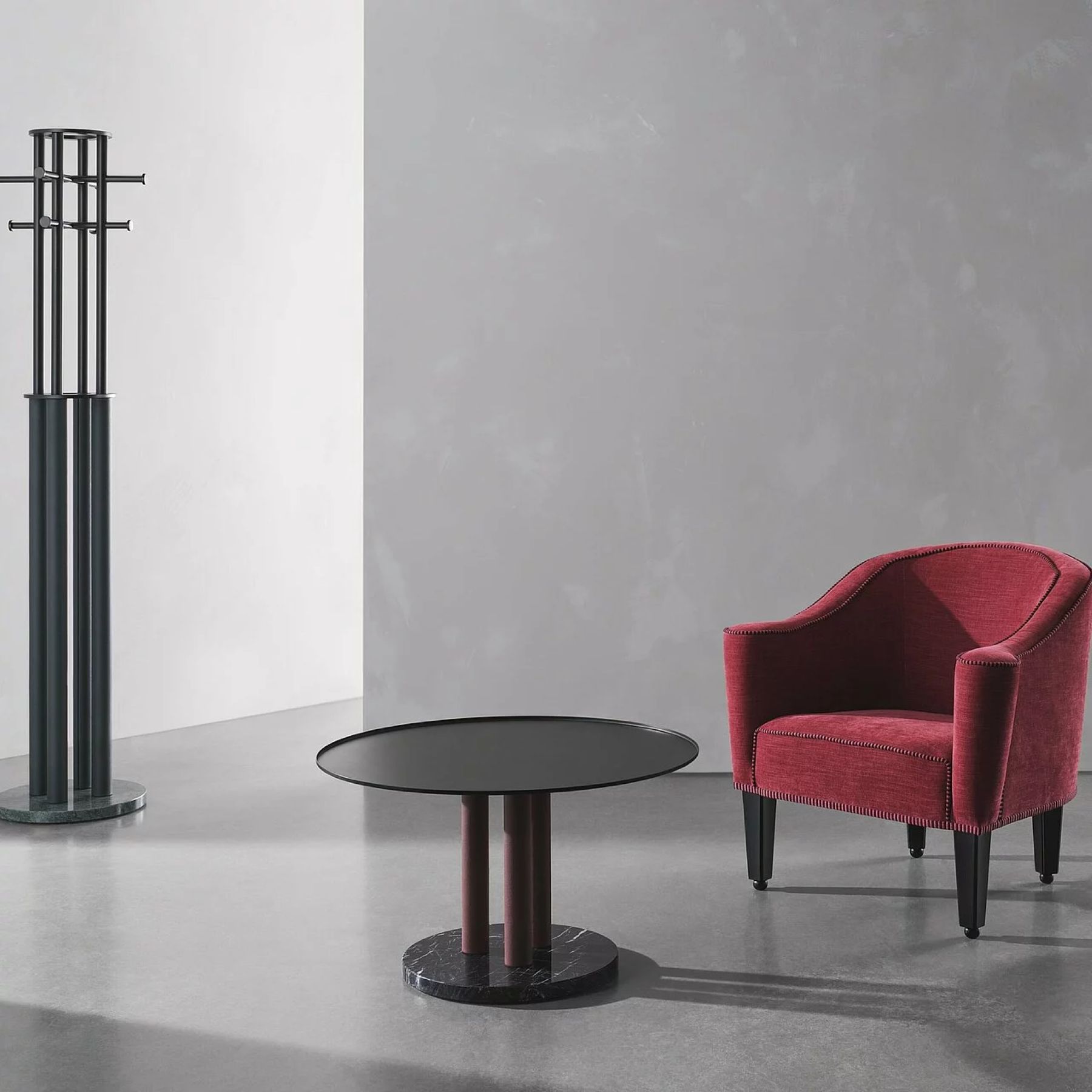Supplementing the practical functionality of everyday objects with distinctive form is the eternal challenge in design. And it is precisely this balancing act that Neri&Hu has pulled off with the wardrobe stands and tables in the BATON series, which comes as a homage to the Viennese Secessionist design movement. The coffee table is endowed with the same feature – a tray-like tabletop with raised lip – to keep smaller items securely where they were placed.