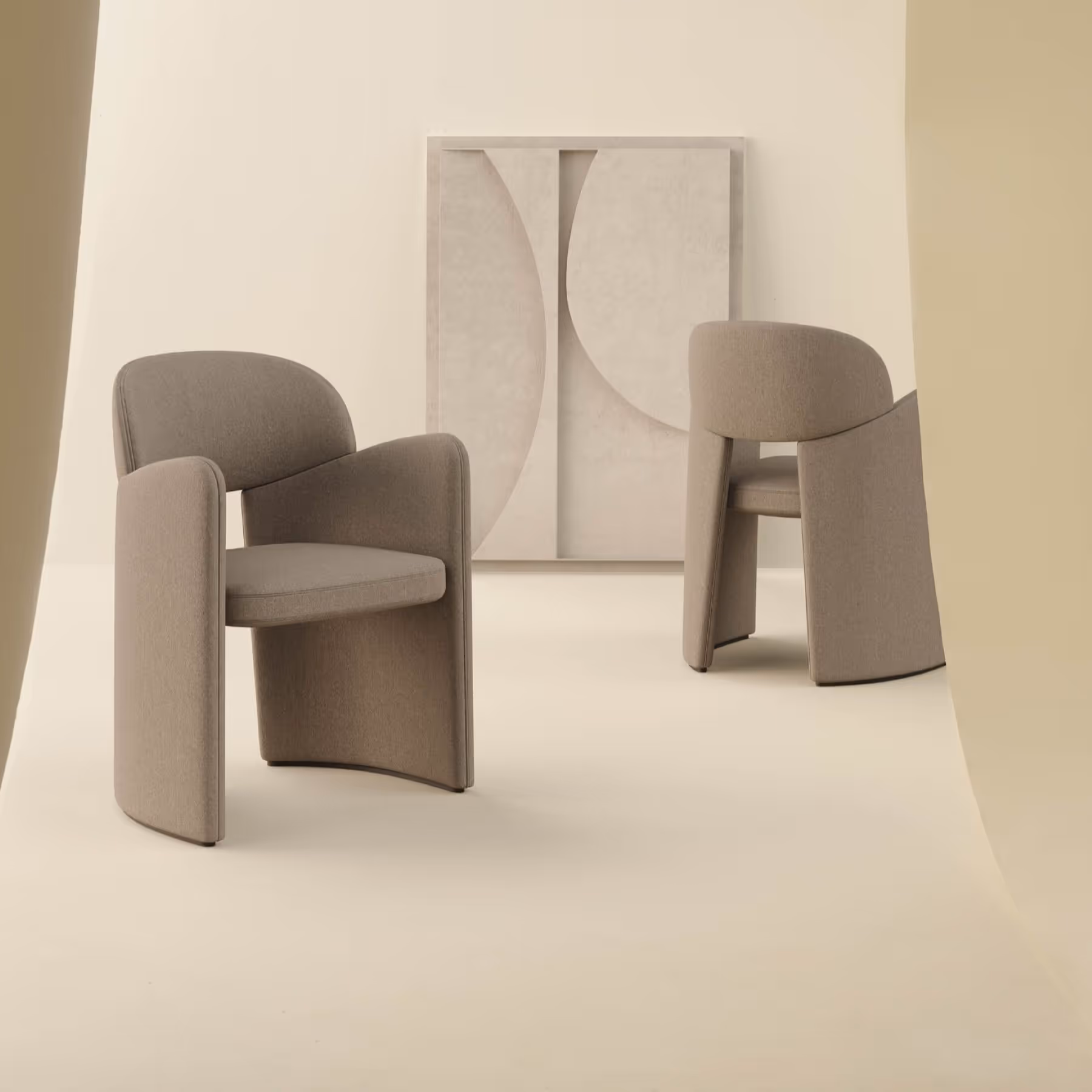 Blanca encapsulates an intriguing dimension from which arises a harmonious blend of practicality and style. Blanca's sides, which become armrests, encircle the seat, which seems almost suspended, like an embrace to maintain a high level of comfort.