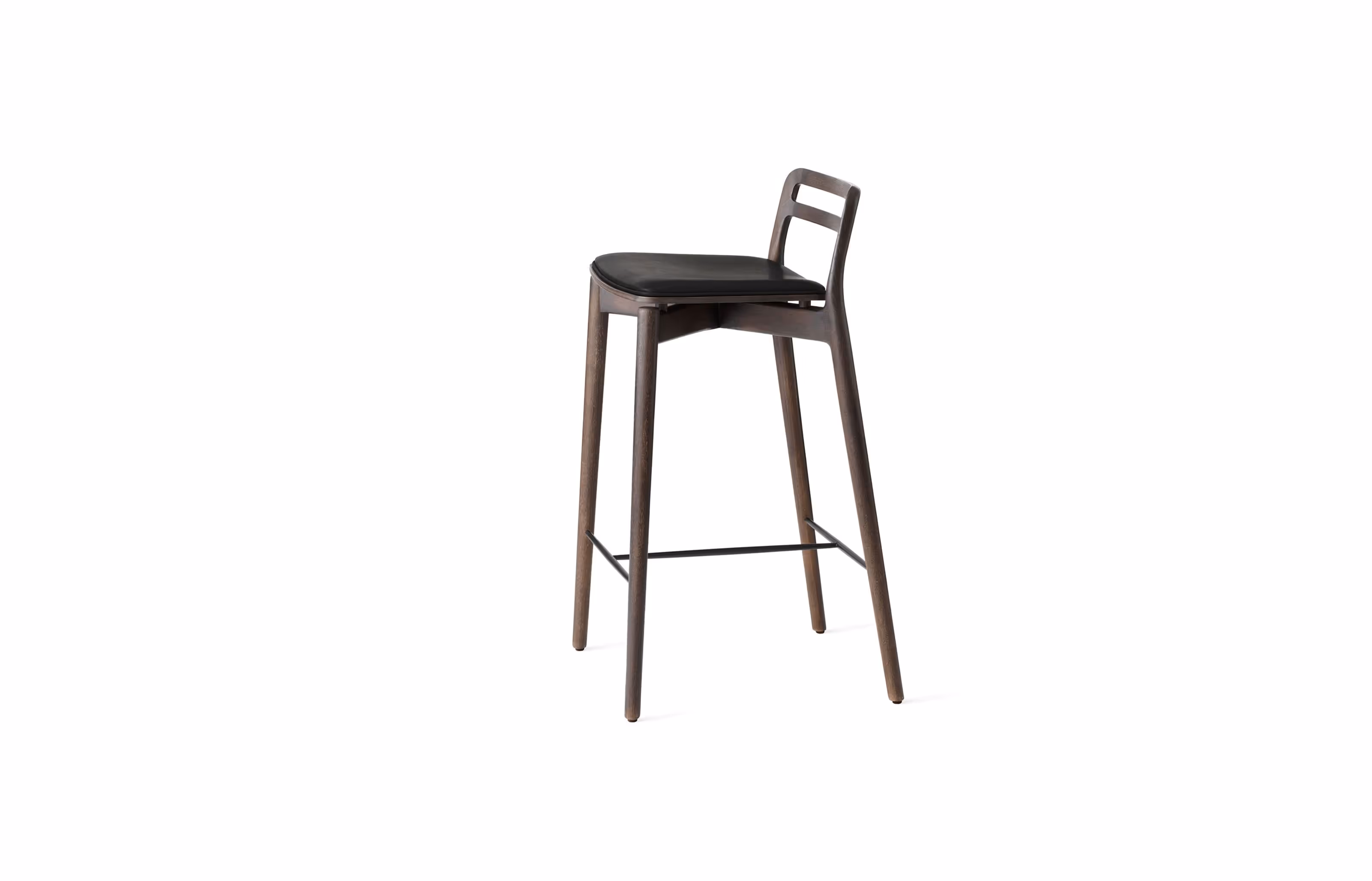 The padded seat cushion is wrapped in soft aniline leather while the curved, small backrest is shaped for optimal back support. The oiled surface shields the bar counter from everyday wear and tear.