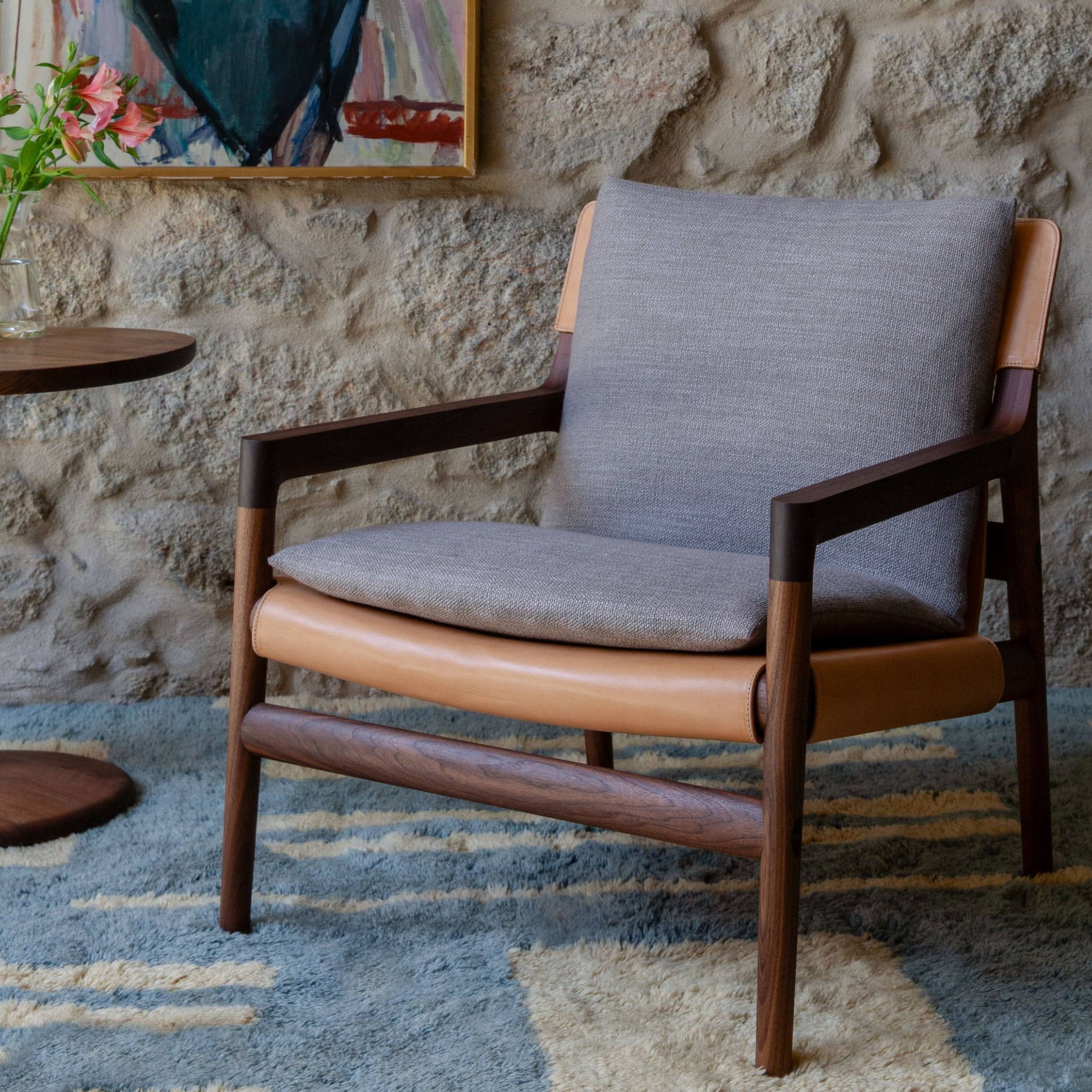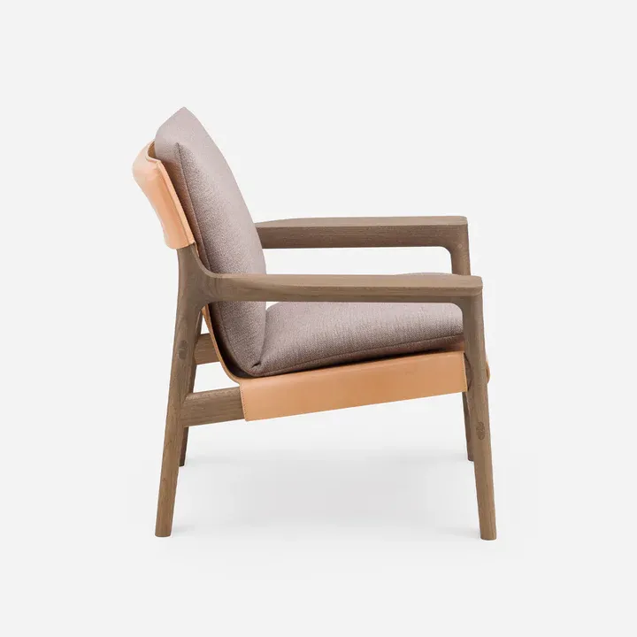 An exquisite leather seat, custom made by a Portuguese saddler, is suspended from the chair frame, then softened with upholstered cushions. Sela boasts an ageless appearance with a contemporary edge; the perfect blend of natural elements, craftsmanship, and timeless appeal.