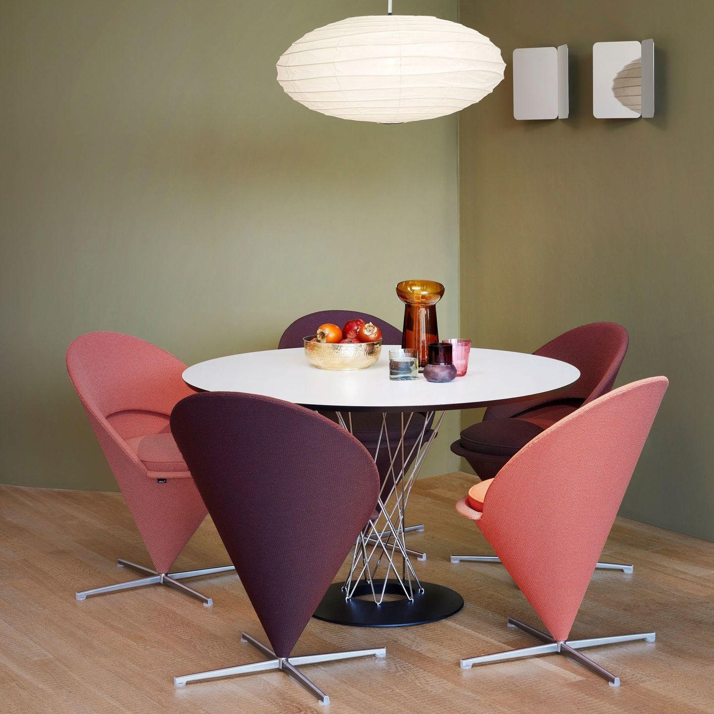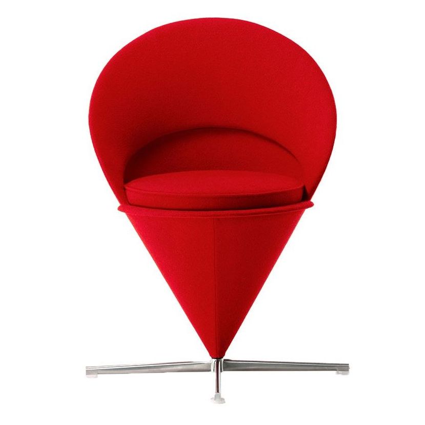 Verner Panton originally designed the Cone Chair for a restaurant in Denmark. It takes its shape from the classic geometric figure for which it is named.