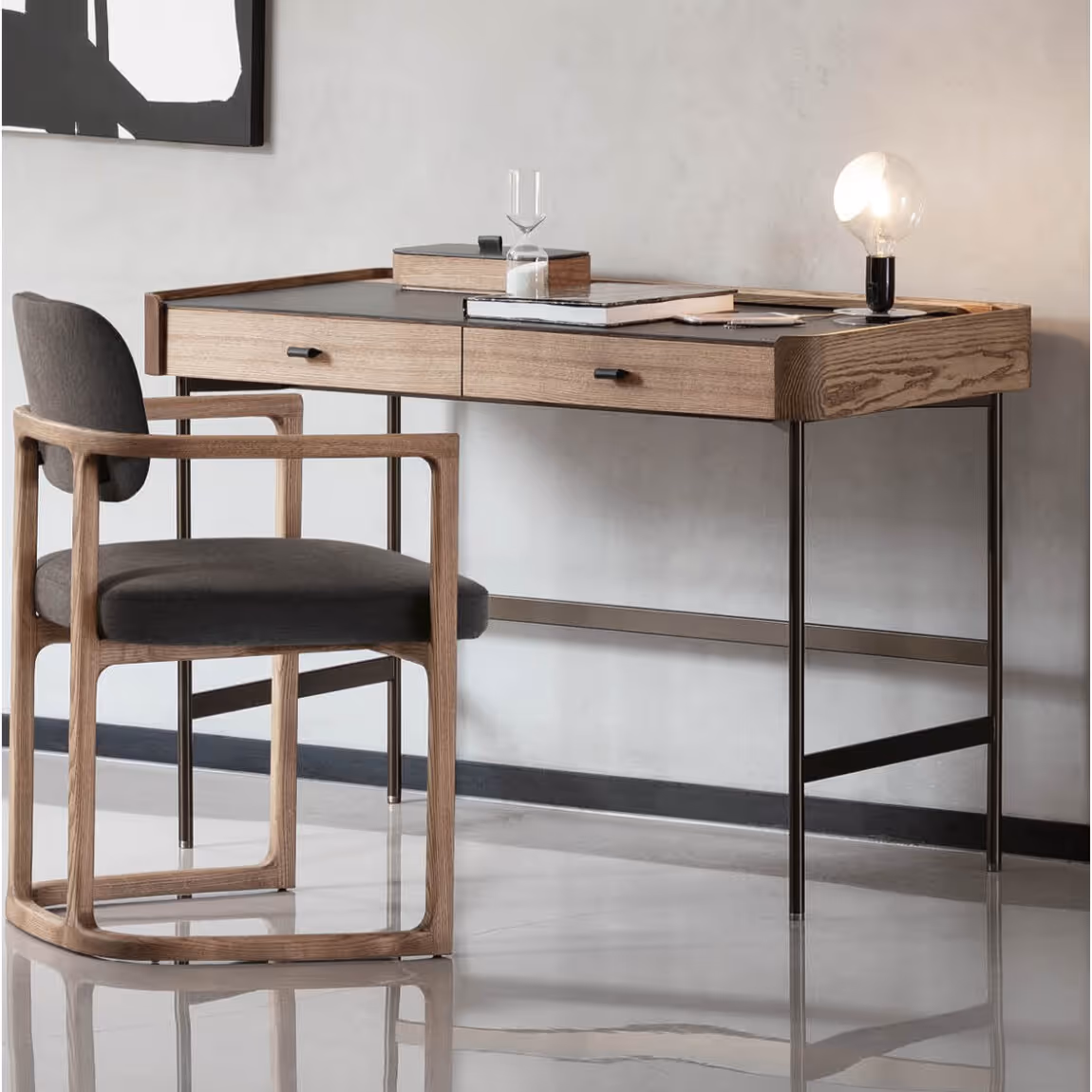 The Scandinavian values meet the Italian tradition in the creation of the refined processing of ash wood associated with leather for the top and Bronzoro metal for the base: Dafto coiffeuse. Dafto is classified as a perfect example of the harmonious union between aesthetics and functionality sought after in every Porada piece.