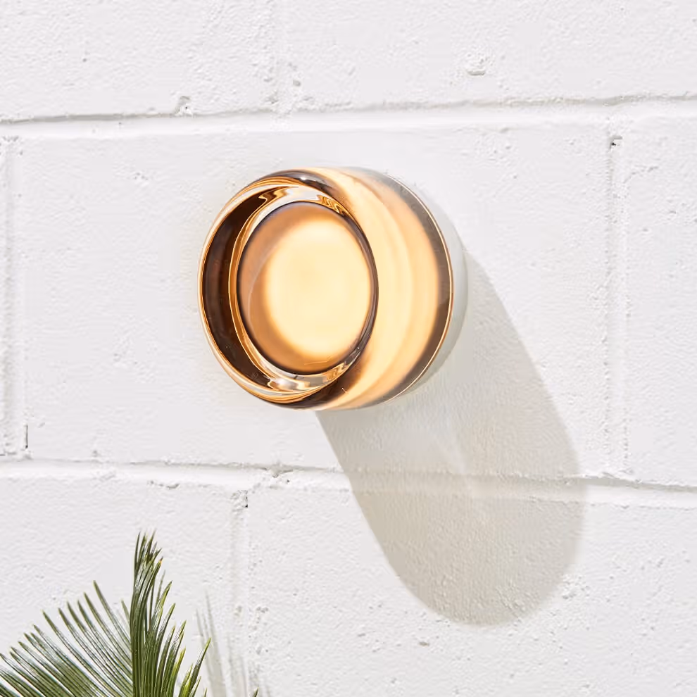 Dimple is a compact and flush-mounted sconce that casts a diffuse and soft, atmospheric light. It is cheekily named for the thick, domed circular diffuser embedded into its front face.
