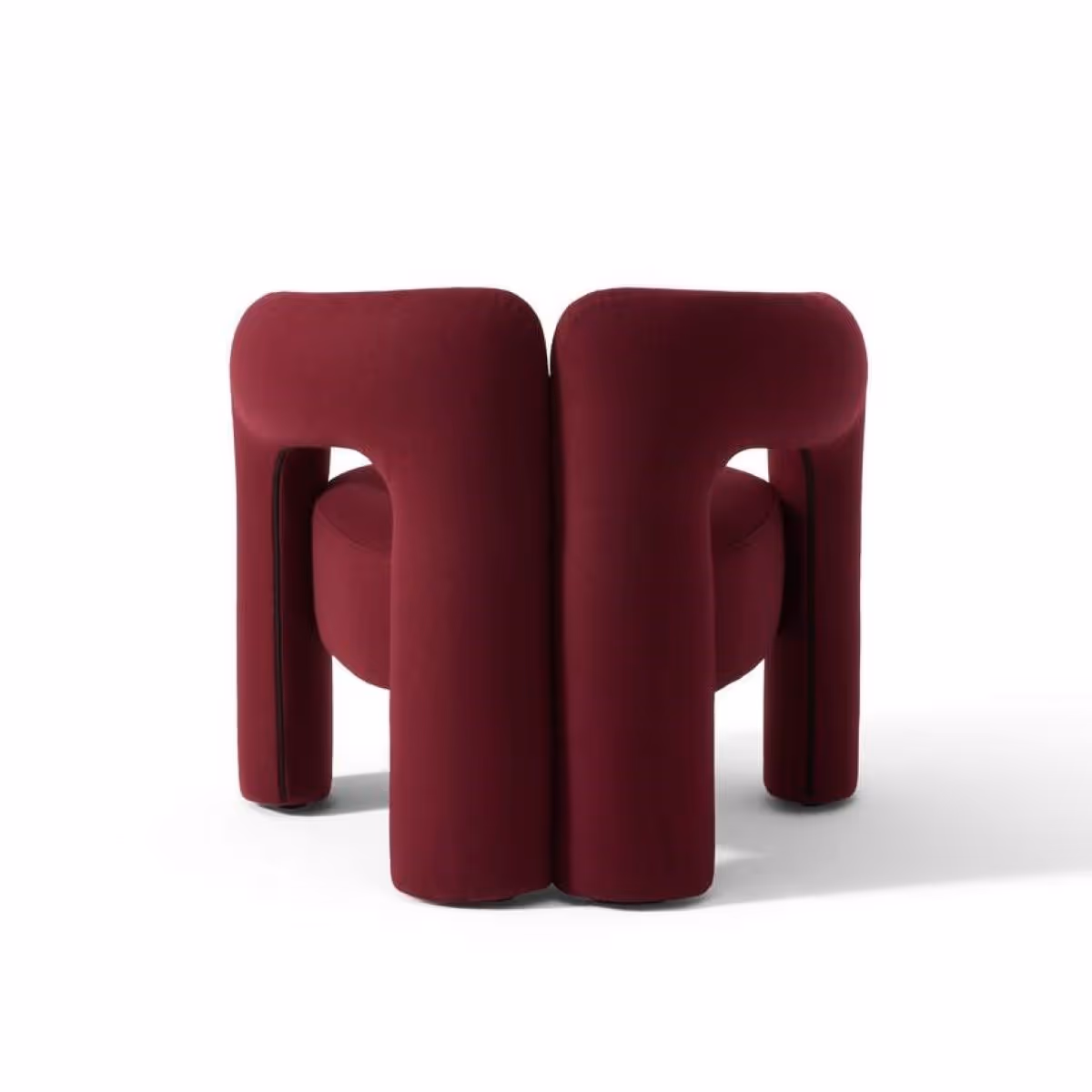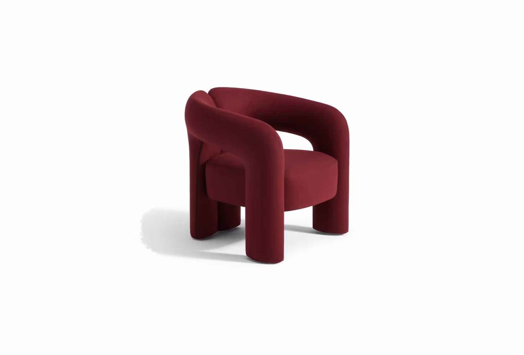 An armchair with sinuous curves, envisioned as a refuge of relaxation.