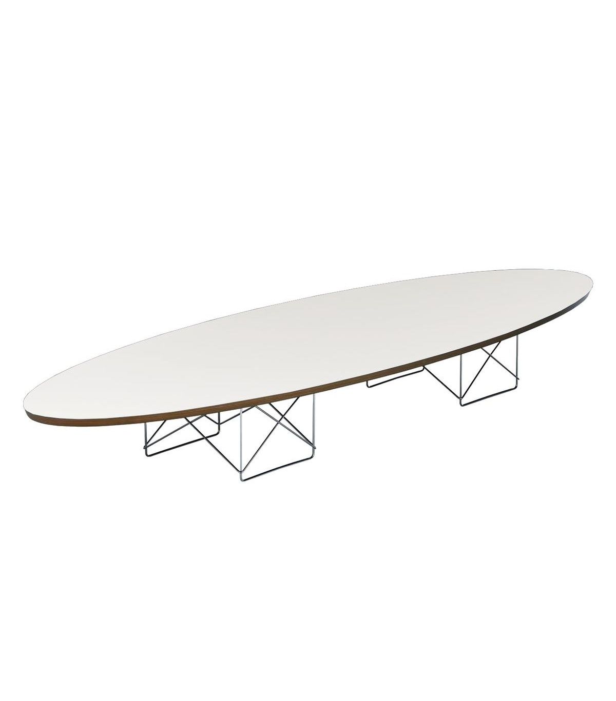 The expansive, elegant ETR sofa table by Charles and Ray Eames comes with tops in a choice of black or white and a wire base with a chrome-plated or black powder-coated finish.