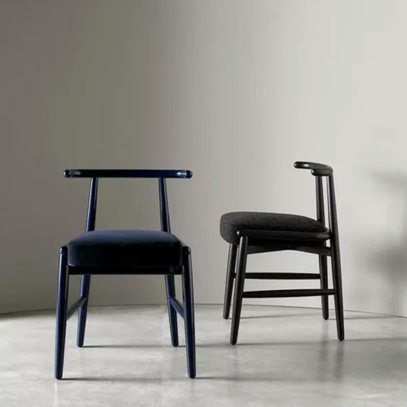 More contemporary in the wooden version, it becomes more elegant and refined in the glossy or matt lacquered versions expressing the brand’s eclecticism. For the Emilia chair two different kinds of seats are available: an upholstered version with textile or leather cover; a second version in saddle-leather for a more decided, rigorous look.