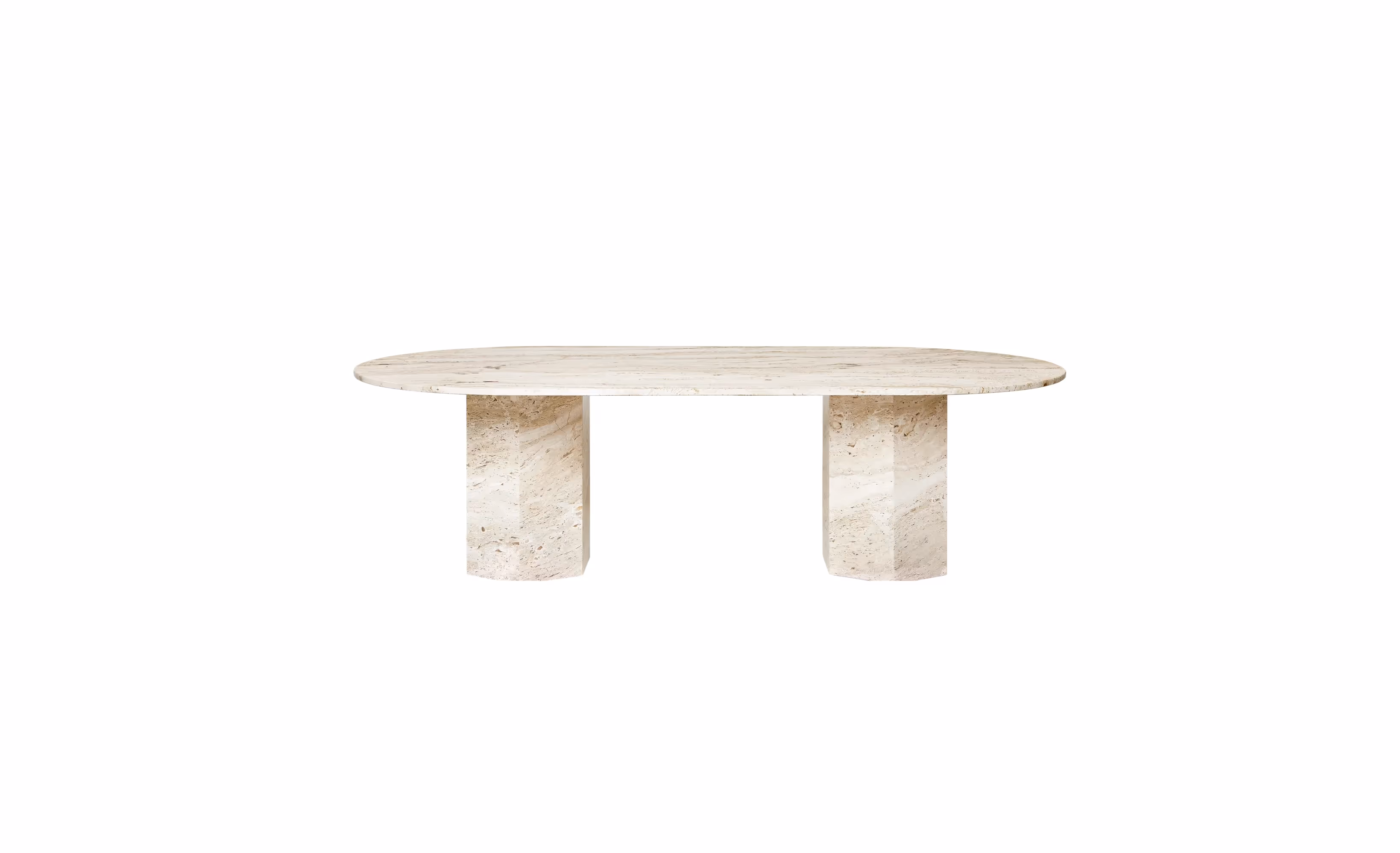 Named after the epic poems of ancient times, GamFratesi’s Epic Table for GUBI is a sculp- tural piece of furniture inspired by Greek columns and Roman architecture. Originally made in Italy from travertine stone, the table’s new variant marks the first time GamFratesi has worked with steel plates, which are galvanized, lacquered, and then treated with a series of hand-fin- ishing processes to create a unique surface expression for each table. The table’s monolithic form remains, now with an industrial expression, in which a new detail can be discovered with every use.