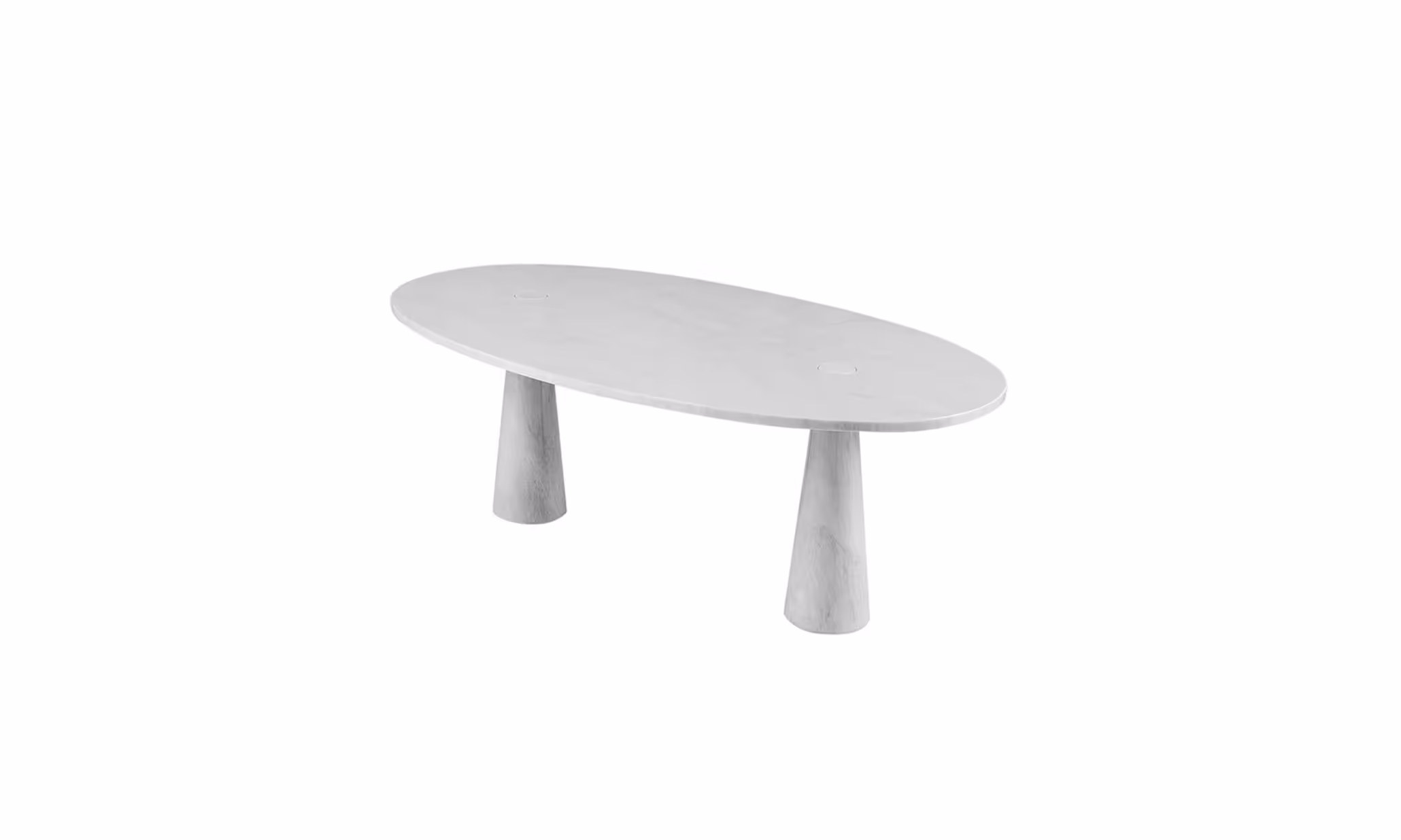 A set of marble tables as a milestone of the research into furniture with assembled without joints or clamps.