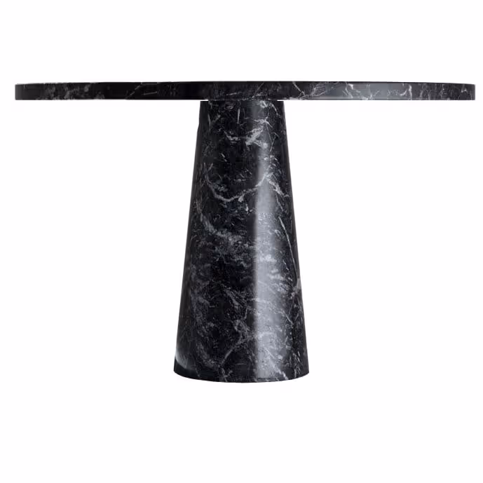 The structural design of the “Eros” tables involves a gravity-based joint between the top and leg made possible by the truncated-conical section of the leg itself.