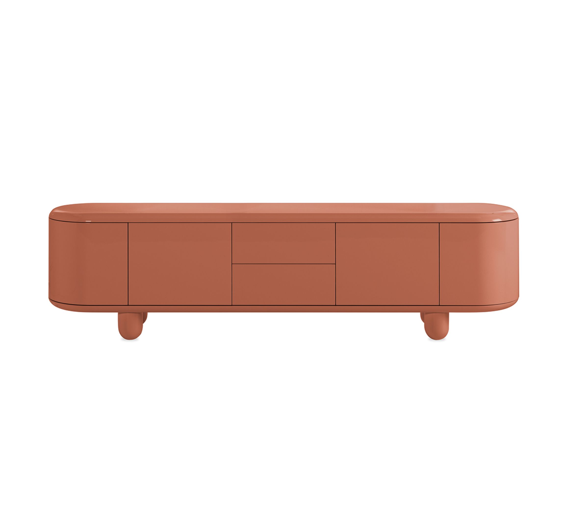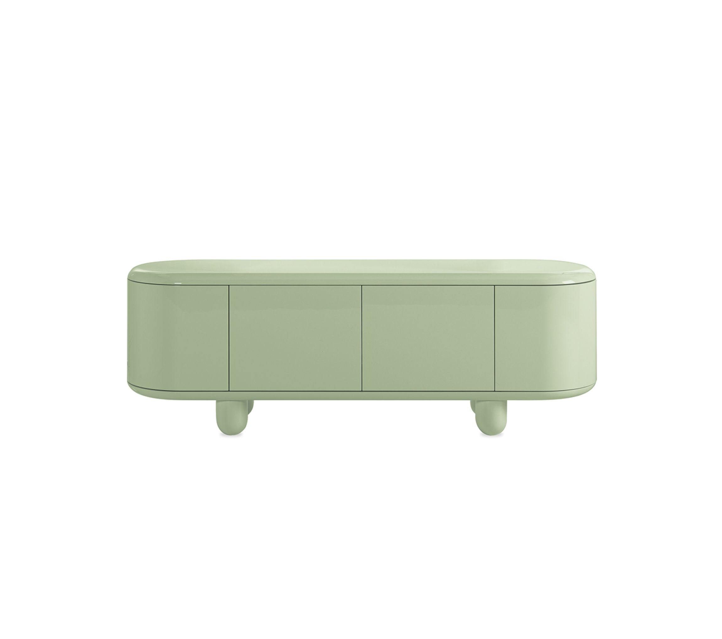 The cabinet is detachable and can be easily transported, but its body stands out with an astral quality. It hovers over its wooden legs, simmering in colourful curves and a brilliant gloss. Its elegance is out of this world, nearly.