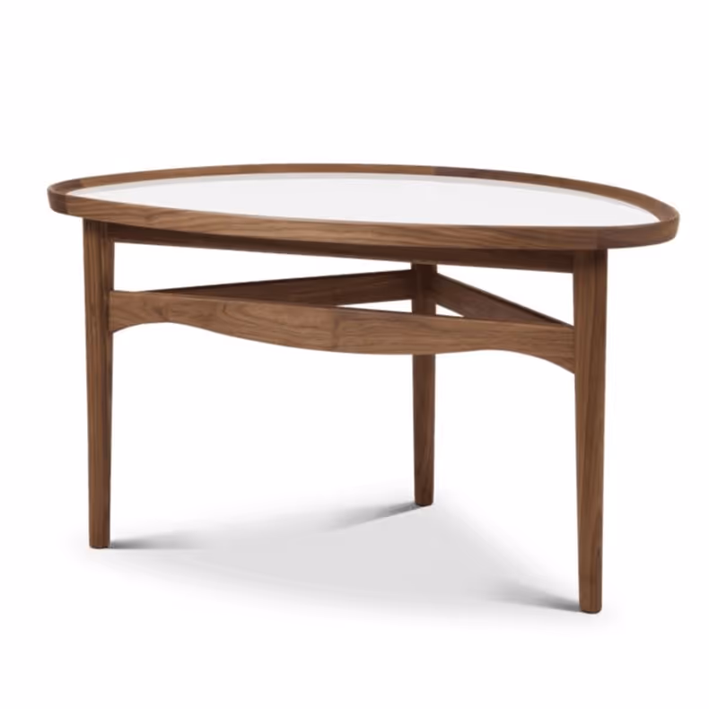 The three-legged Eye Table, named for its distinctive shape, was originally designed to complement the 46 Sofa. Its soft, organic curves align seamlessly with the sofa’s form, creating a cohesive expression. Yet, thanks to its refined details and timeless character, the Eye Table fits effortlessly into a variety of living room settings.