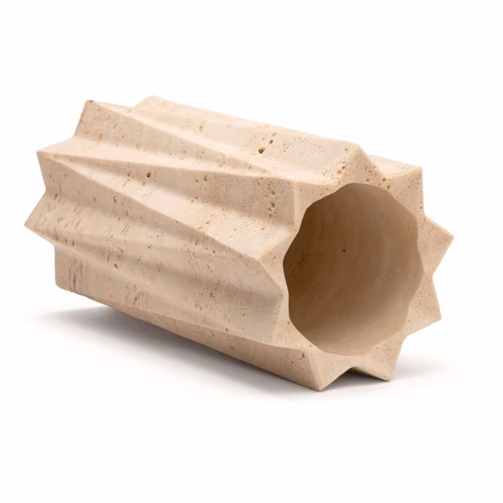 Fold vase is part of a tabletop collection that pushes the boundaries of craftsmanship. Fold is crafted from superior quality Travertino Classico and showcases the artisan’s skill in shaping stone like a sheet of paper. A delicate gesture that reveals an unparalleled lightness and harmony.