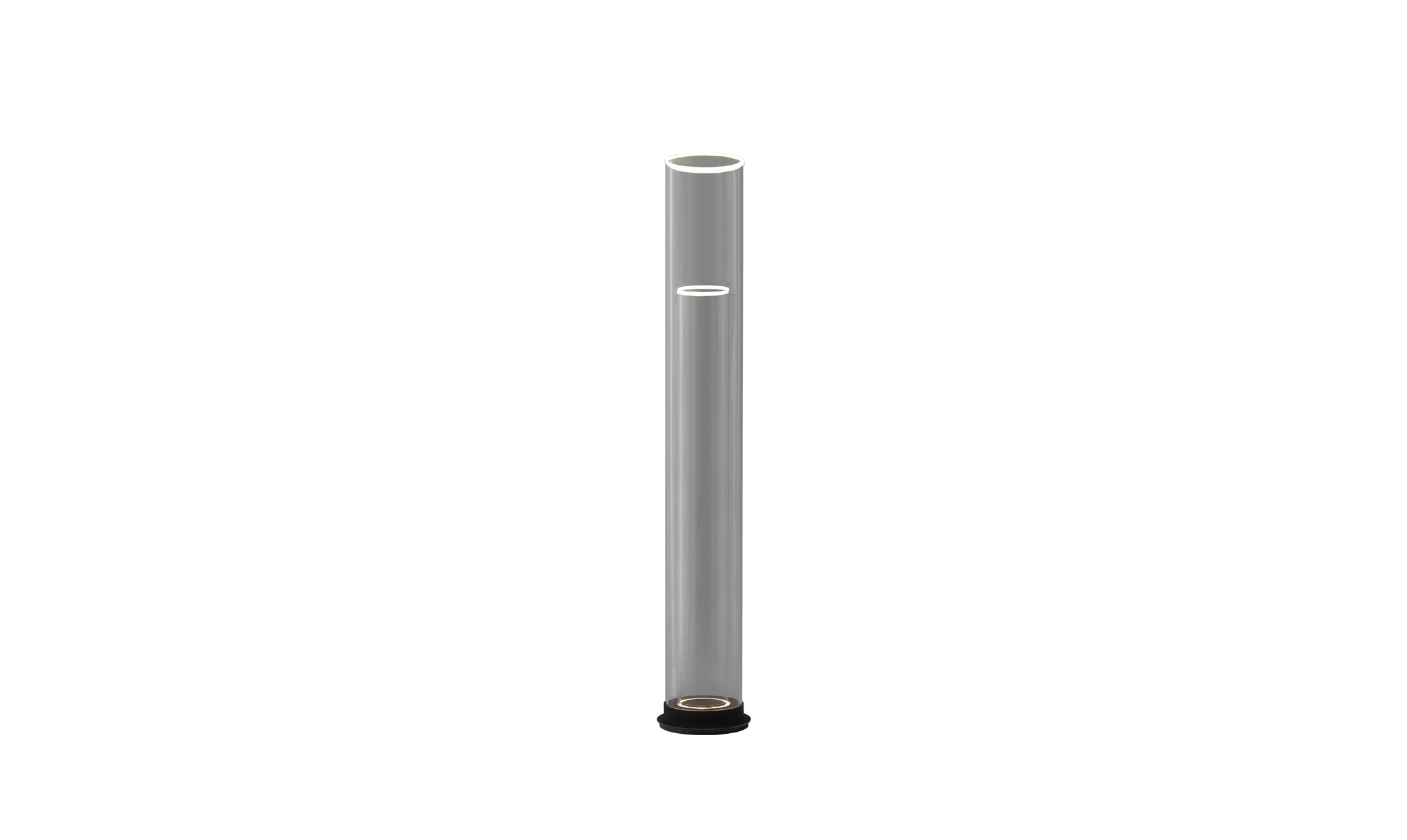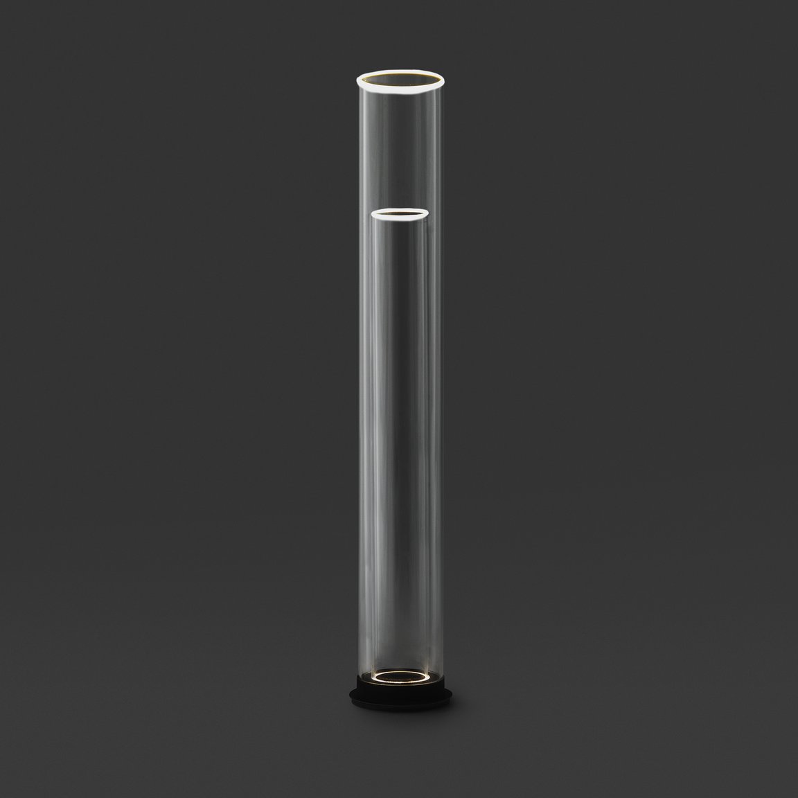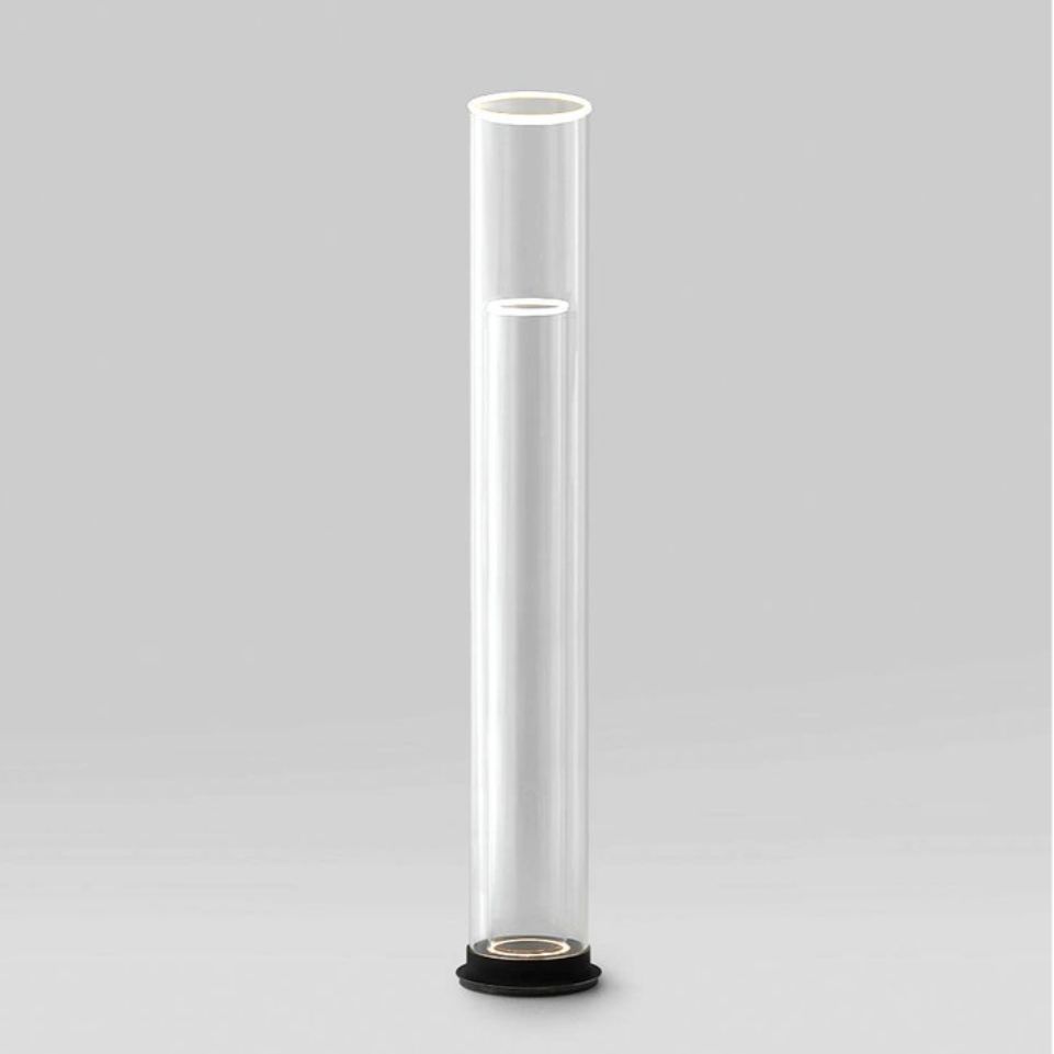 The Floor Light is a minimal floor lamp made from two pure borosilicate glass tubes.