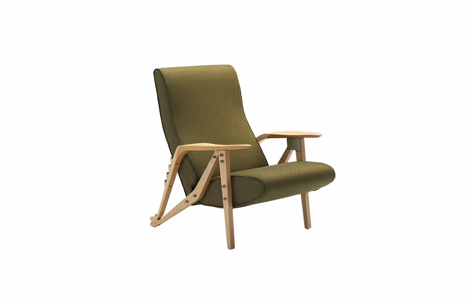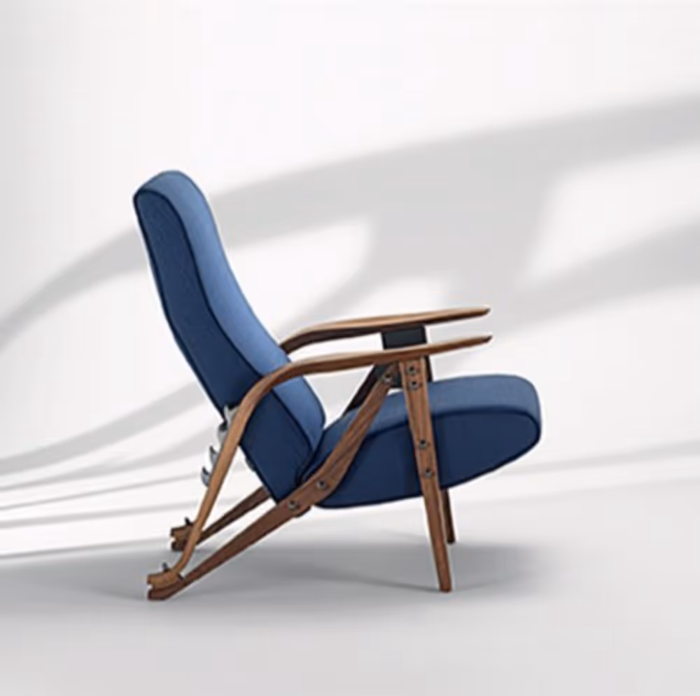 A reclining armchair with four positions, which represents Mollino's eclectic style, seeking ergonomics and comfort.