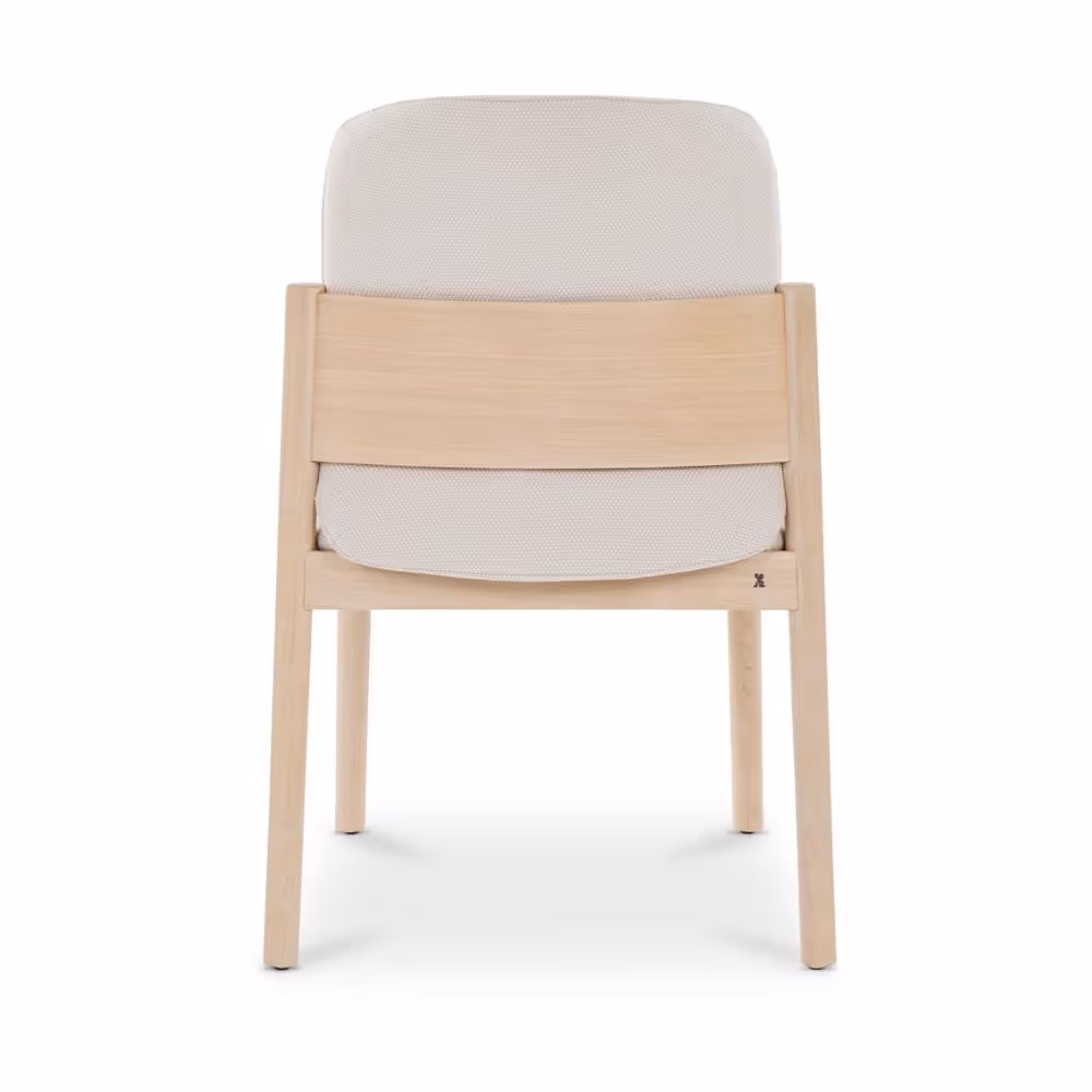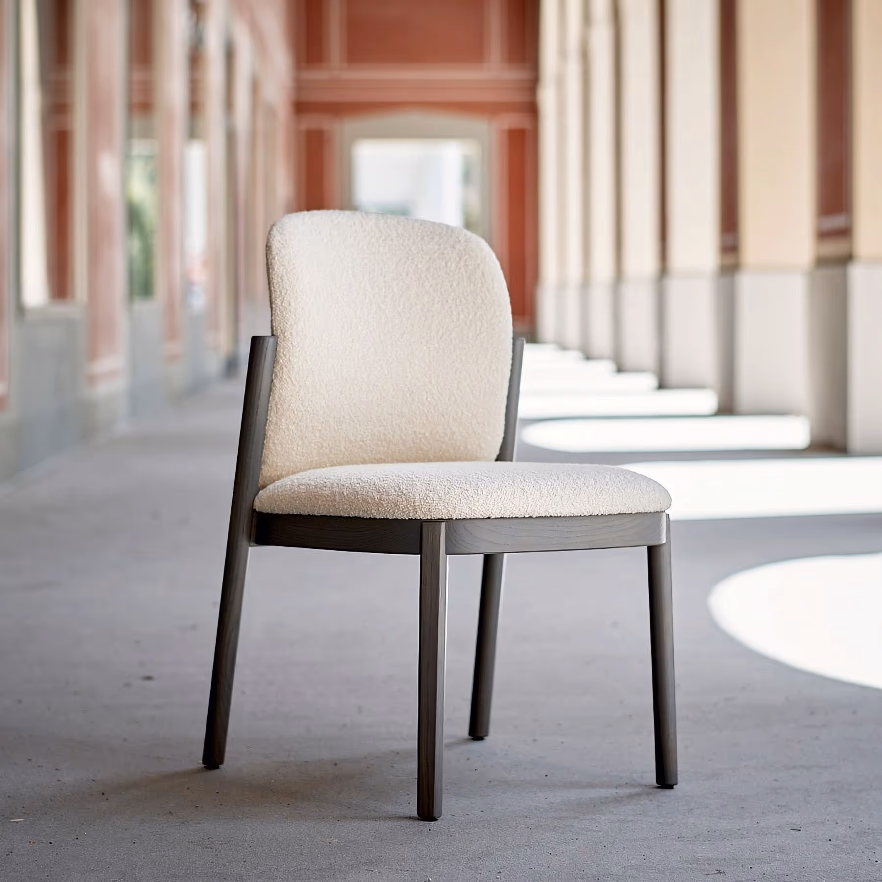 The soft upholstery of Sebastian Herkner’s Granville Bridge Chair reflects the serene grey skies of Vancouver while the hardwood structure imitates the suspension bridge itself with its supportive bent plywood back.