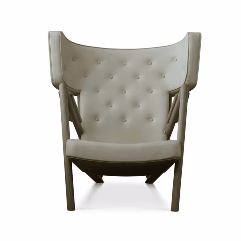 Designed in 1938, the Grasshopper Chair was one of Finn Juhl’s first attempts at expressing his artistic freedom through furniture, marking the beginning of a long line of designs that would establish his reputation. Although it was never produced during his lifetime, the chair gained iconic status through numerous illustrations in design literature and was finally put into production in 2019. The chair is hand-upholstered in Denmark, available in textile or leather, with a frame crafted in oak or walnut.