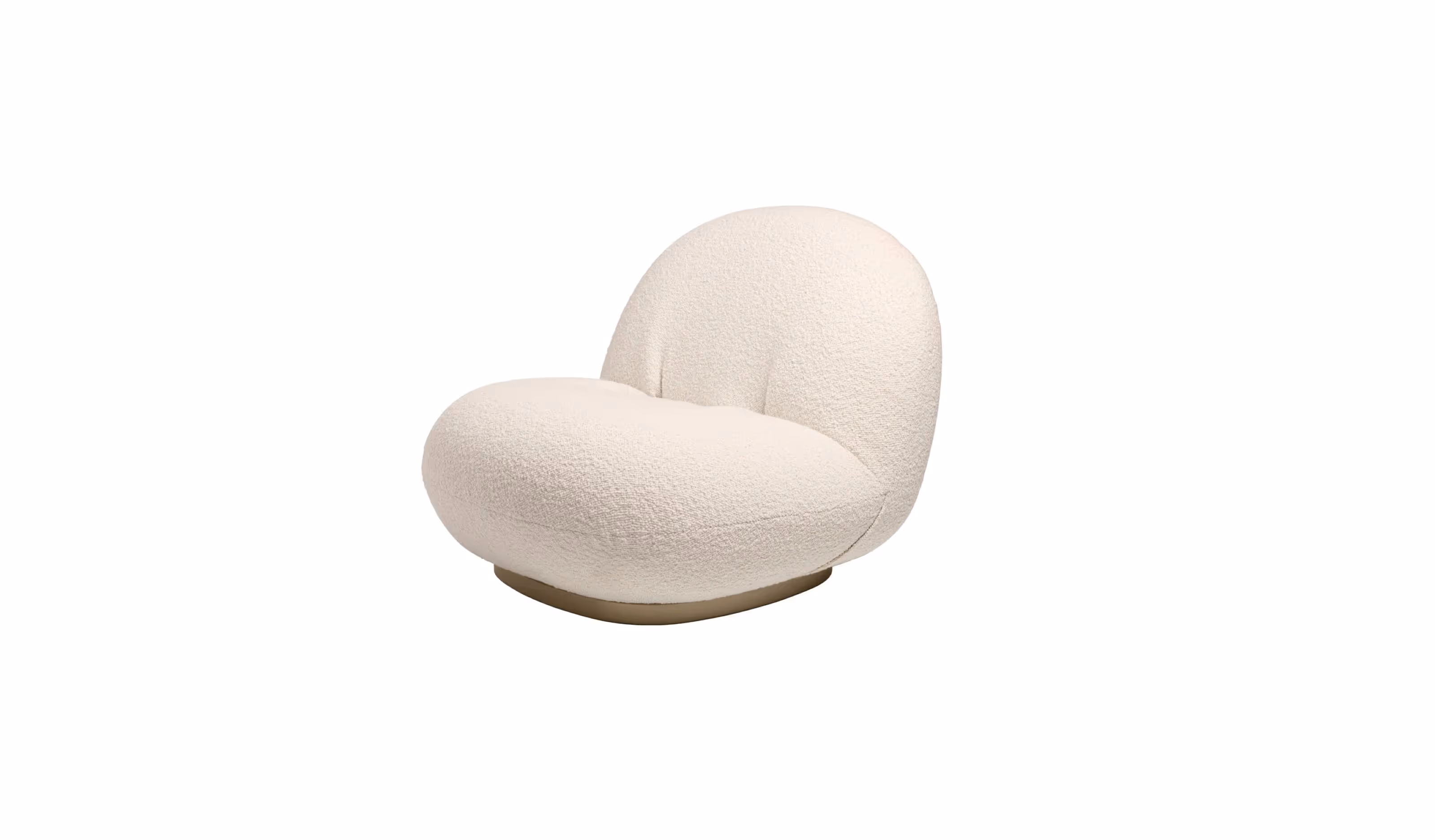 Legendary French designer Pierre Paulin originally designed the Pacha Lounge Chair in 1975. Paulin designed the chair in harmony with the changing design style of its period, replacing the austerity of post-war design with a new, vigorous approach.Paulin managed to give a real elegance to the rounded forms of the Pacha Lounge Chair by finding the perfect proportions, raising it lightly on its base and tracing in the foam and upholstery with stitching lines inclined inwards.