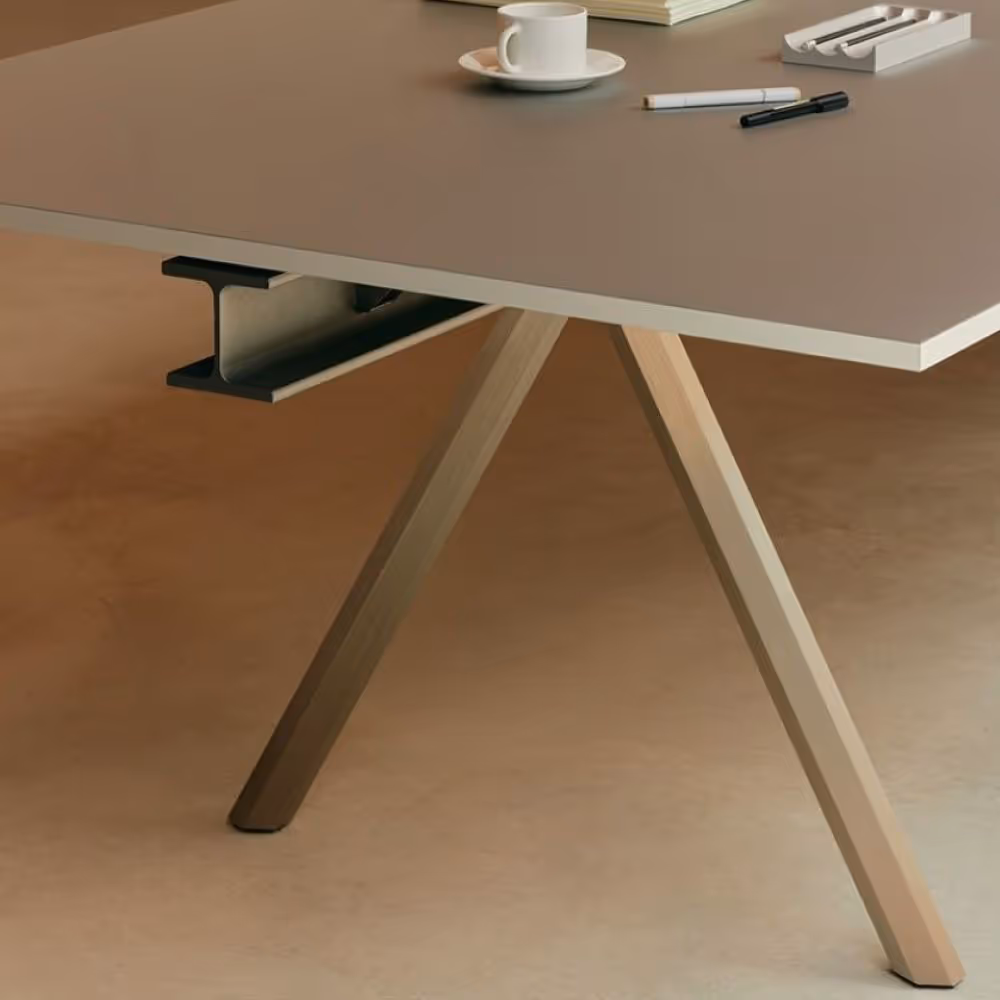 A technical metal table with a supporting HEB beam, designed to provide a robust and stable surface. The HEB beam is a steel structural element with an H shape, characterized by greater height than the width of its flanges. This design gives the beam significant strength and weight-bearing capacity.