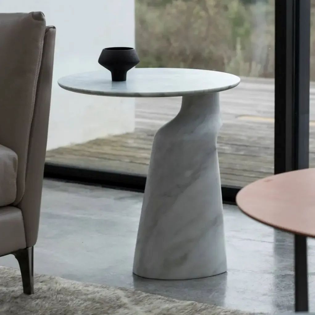 Sculpted entirely from Calacatta Oro or Fior di Pesco marble with semi-glossy finish, the monolithic Ilary side table completes the collection. The top is circular and the support is distinctive for its striking handle-groove that makes it easy to move the side table. The two elements are united by an invisible steel frame.