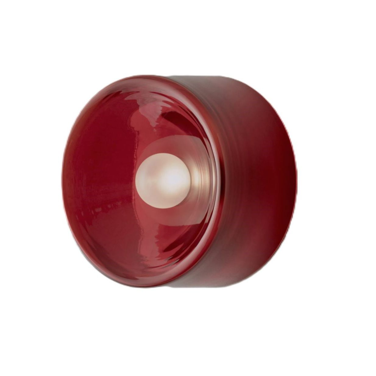 The prismatic convex lens reaches across the wall or ceiling while an enigmatic light glows from within, providing diffused illumination while evoking a sense of wonder.