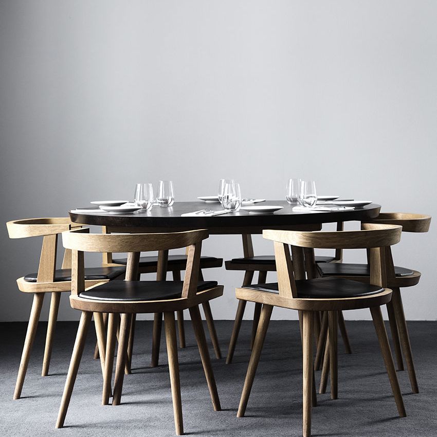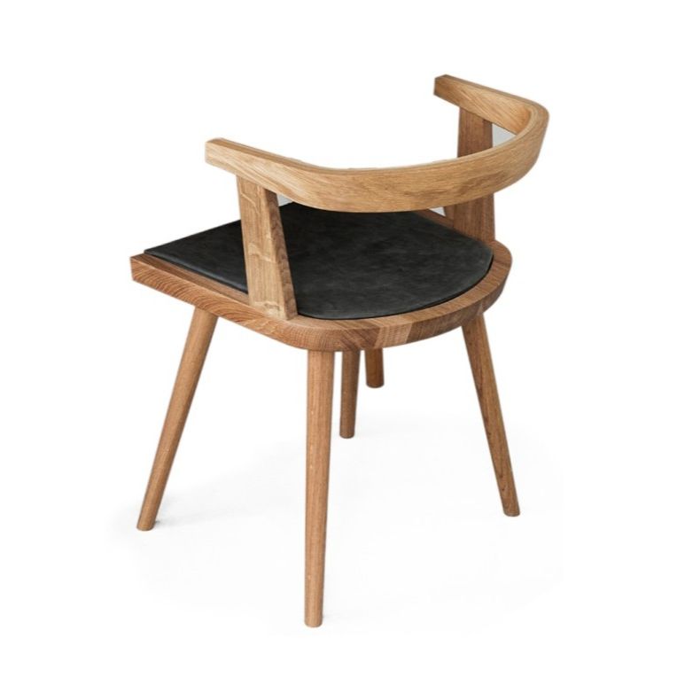 KBH Chair is a dining chair made of solid oak and designed to match the Table perfectly, by sliding the chair under the table, when not in use.