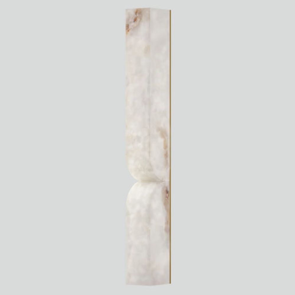 Labra is available in standard and extended lengths, affixed to a brushed brass metal frame. Mounted as a single sconce or a multi-fixture wall configuration, the stone offers a naturally translucent, crystalline glow with darker veins unique to every piece.