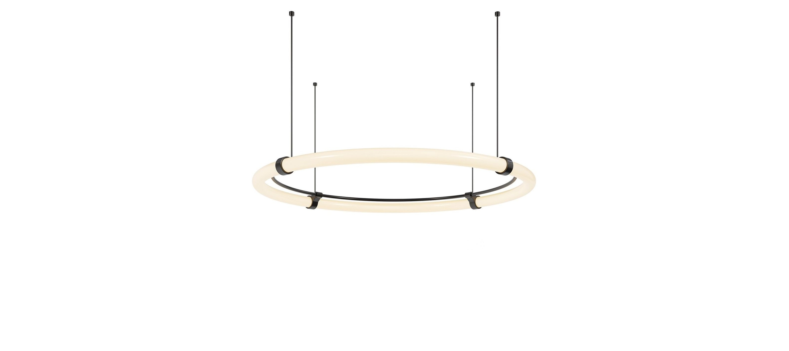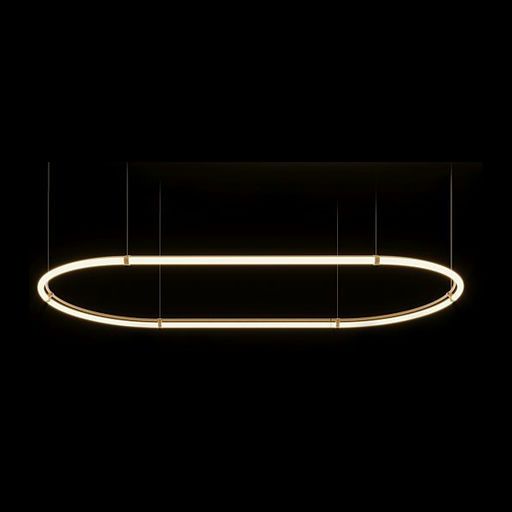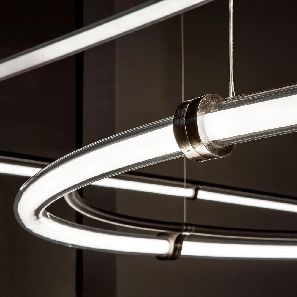 An exercise of subtraction and a search for atypical statements of minimalist aesthetics rethink spatial dynamics leading to Legacy. A thin, long glass tube with dimmable LED light, supported by rings of an overlying burnished brass cylindrical structure, runs with dynamic linearity through the space, tracing with a simple gesture iconic, floating sculptural configurations.