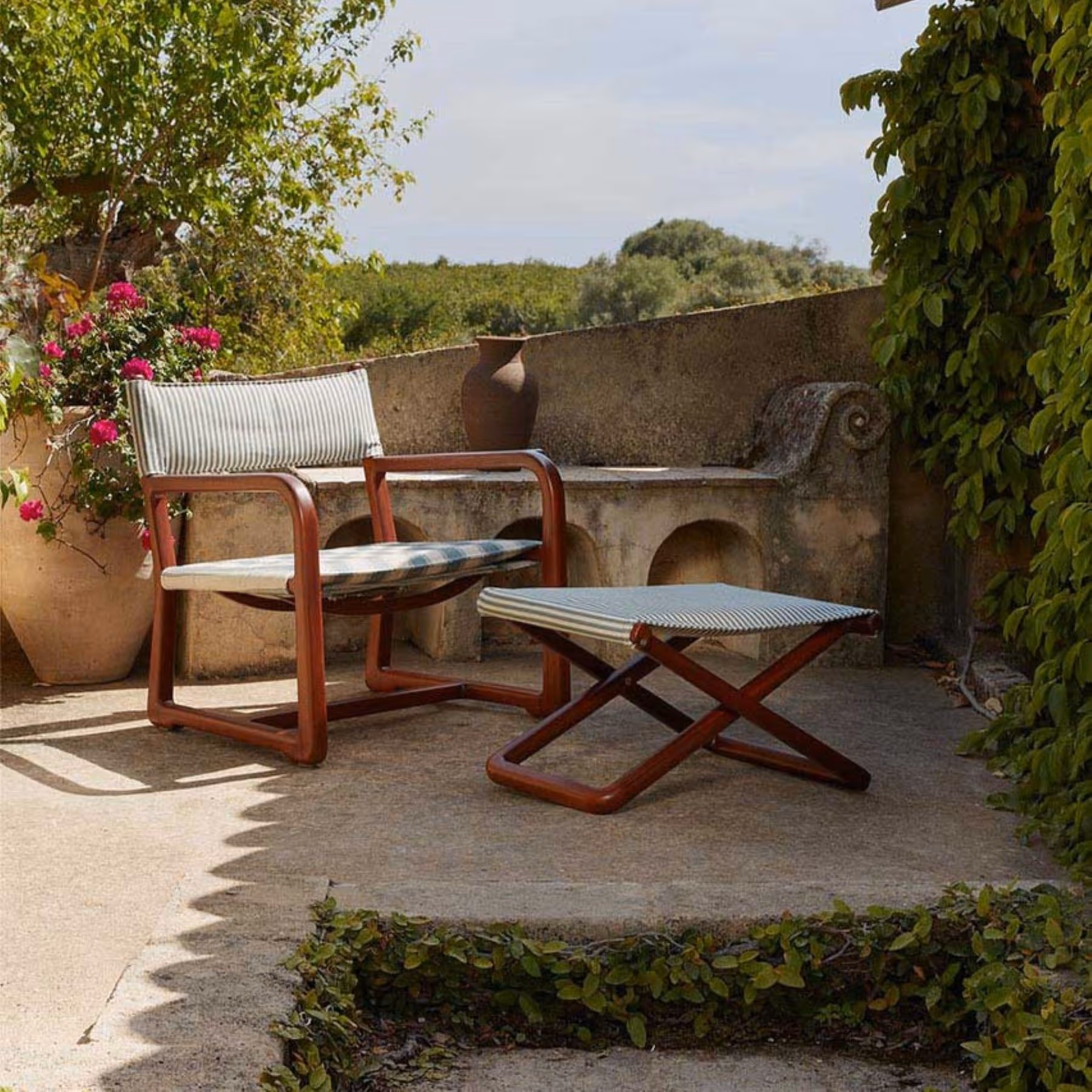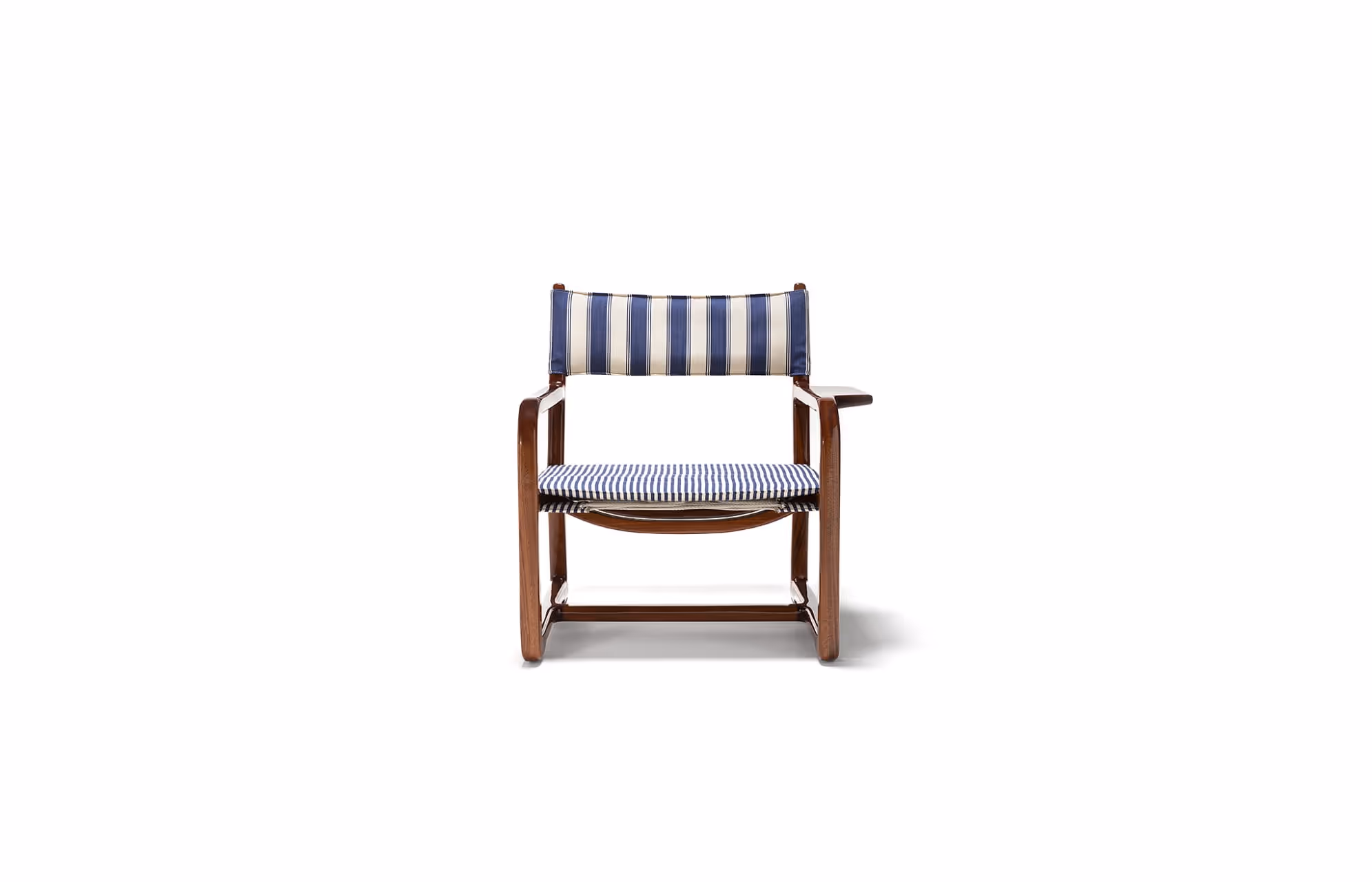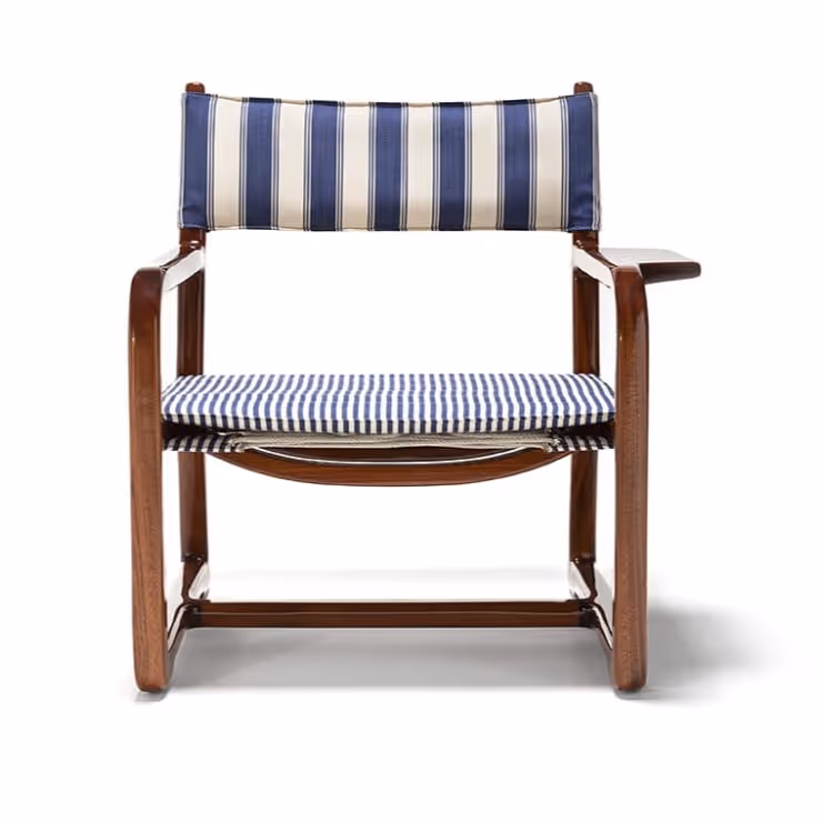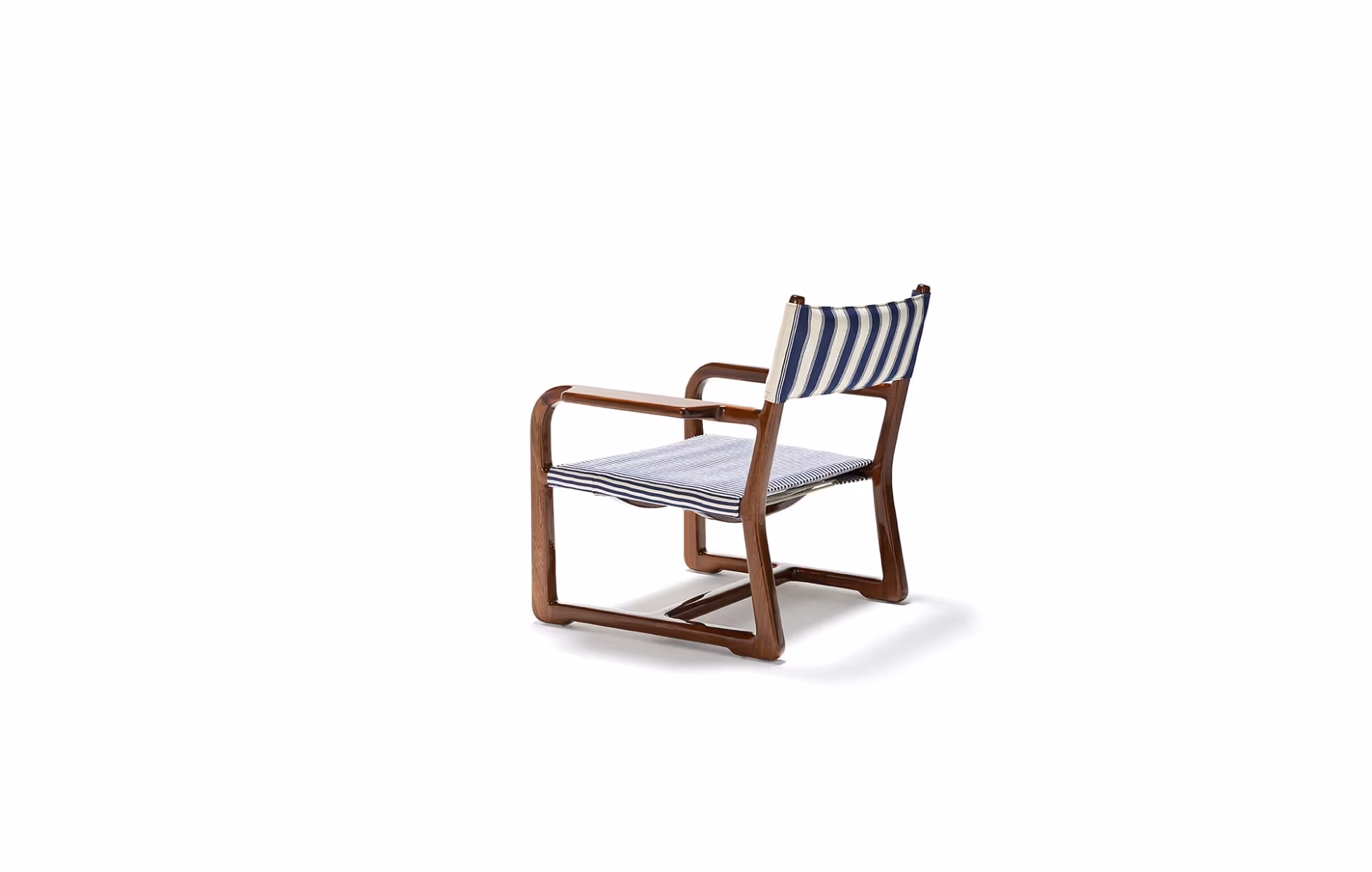 LPIDC02 - Armchair is an auteur piece with sinuous lines and a retro look. The design serves the comfort in this sublime match of wood and textiles with Mediterranean colors.