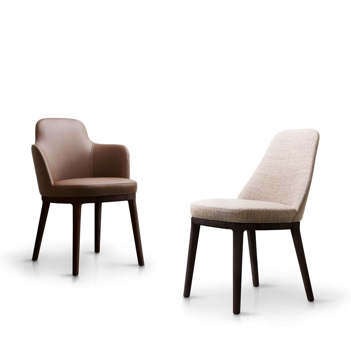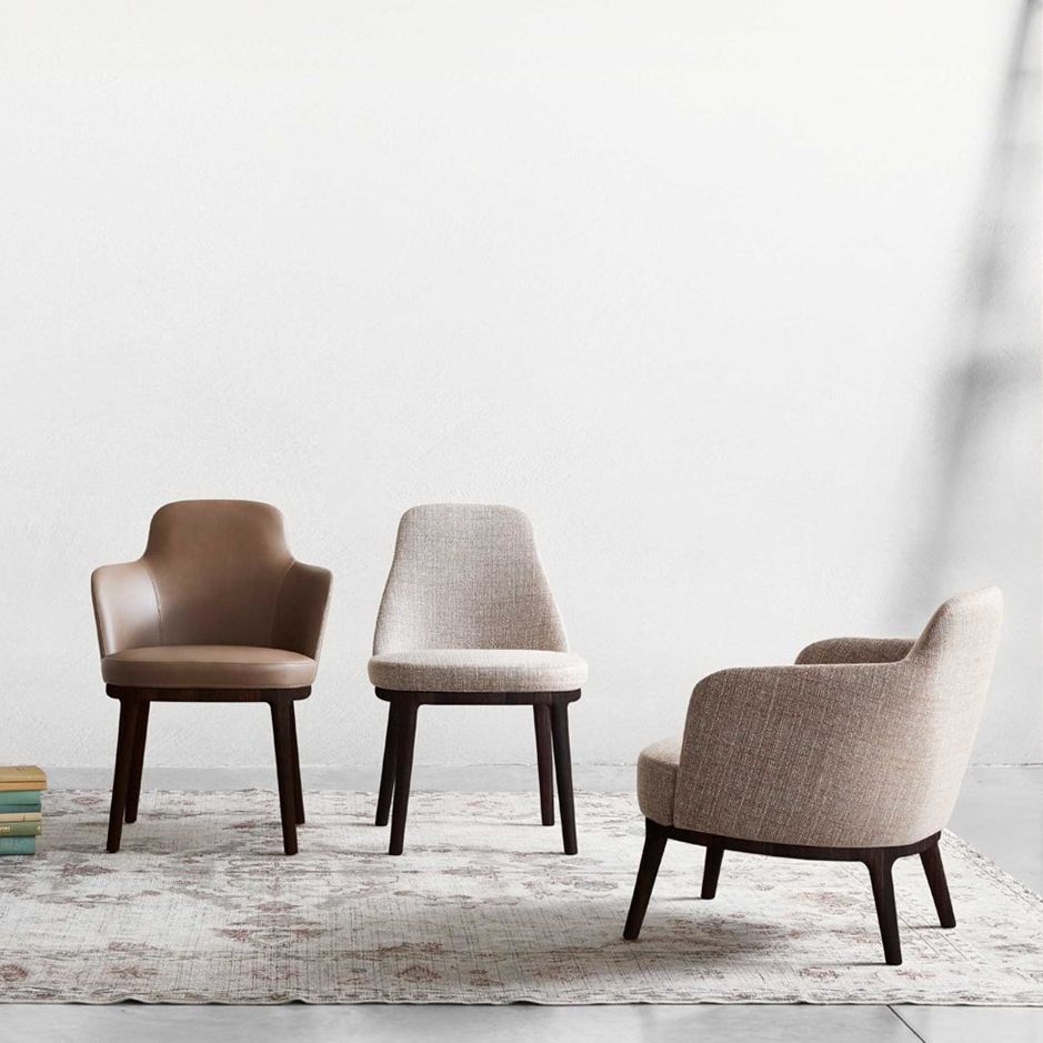 Roberto Lazzeroni’s refined style with a vintage spirit characterises Lucylle, the family of seating consisting of chair, dining chair with armrests, high and low stool and lounge chair. As delicate as its name, Lucylle is a refined proposal defined by classic and welcoming proportions.