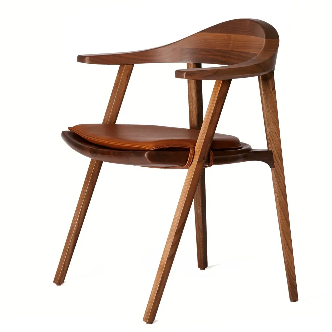 Strong and elegant, sharp and curved, thick and thin — the Mantis is sturdy and solid, yet visually light, and available with hand-stitched leather cushions to amplify the comfort of what is already a profoundly ergonomic seat. Each joint of beautifully grained wood is reinforced by steel pins to ensure maximum durability.