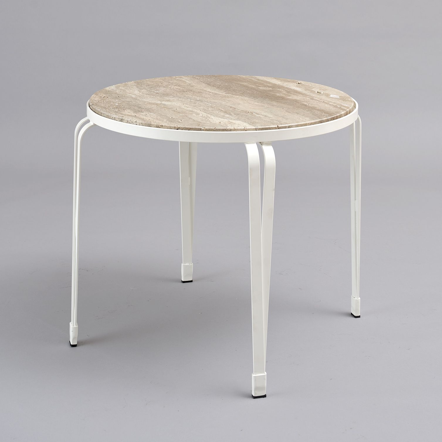 Simple lines for this timeless collection of outdoor furniture to dress endless spaces, the Marina series is also available with indoor finishing, powder-coated for outdoor, top in Travertino.