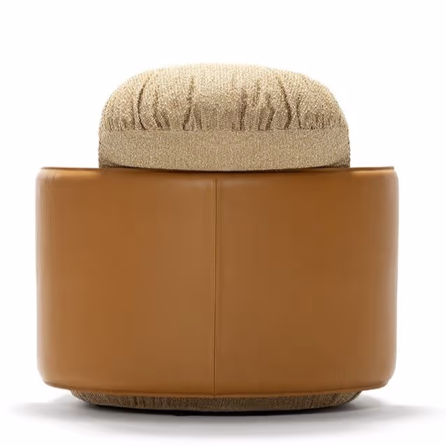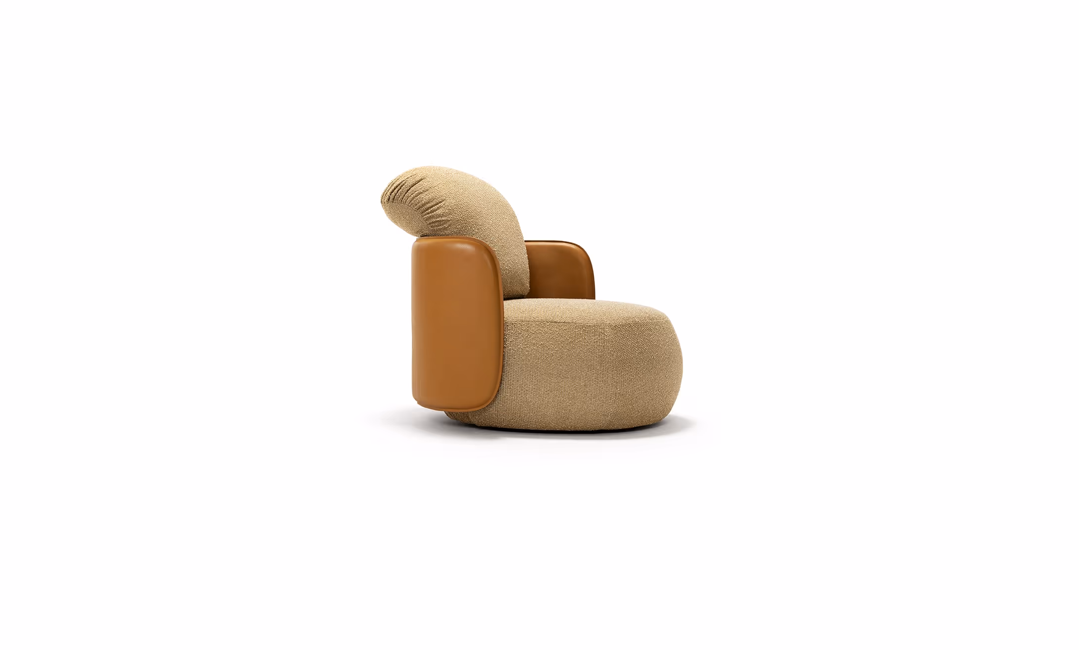 The Mochi Armchair, inspired by the Japanese treat, combines softness and versatility in generous volumes. Perfect for terraces or yachts, it features a leather backrest embracing plush cushions.