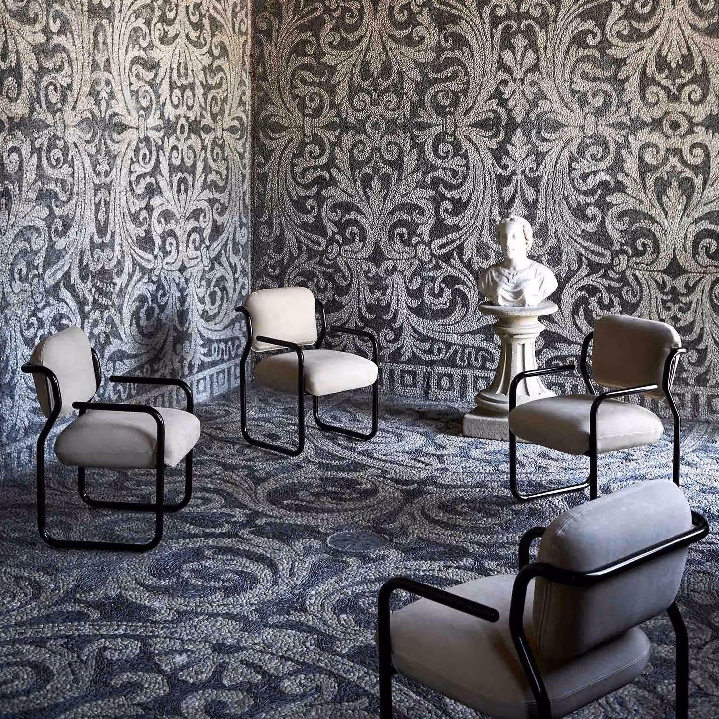 Modernista Chair is a sculptural seat inspired by rationalist architecture. Stainless steel curves and generous cushions create balance between structure and softness. Handcrafted finishes highlight precision and design clarity, elevating any space with discreet sophistication. The Modernista collection by Studiopepe blends the bold spirit of the ’70s with soft lines and modernist architecture, wrapped in timeless elegance.